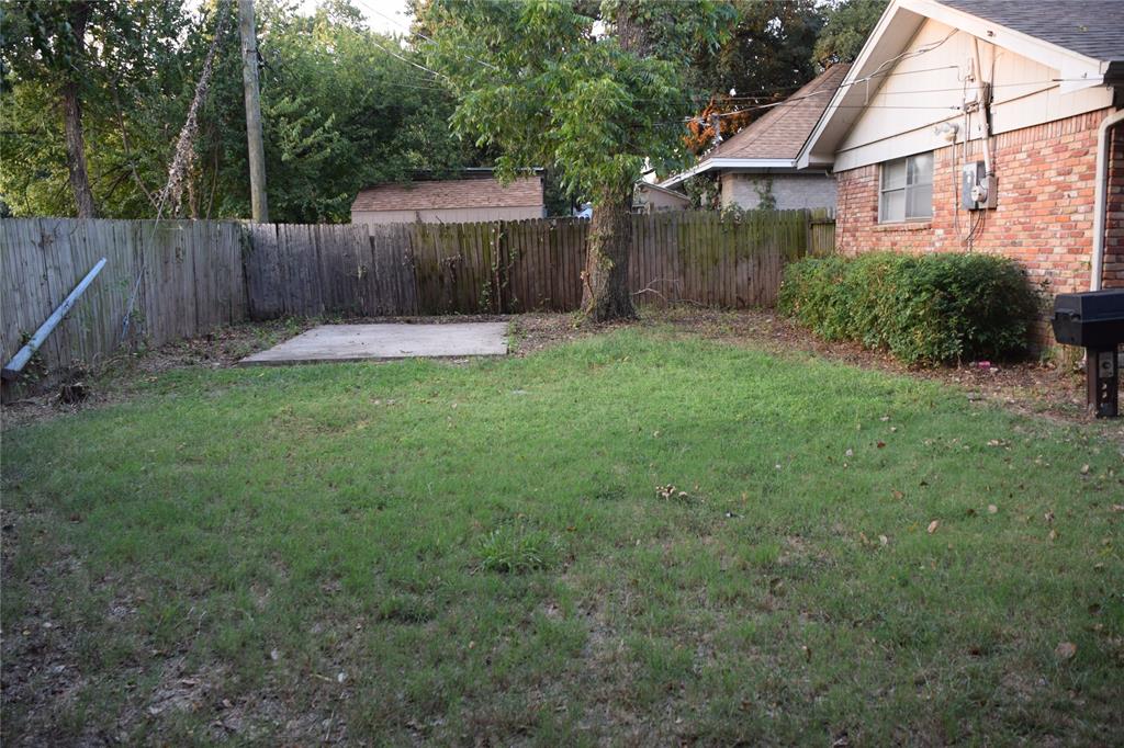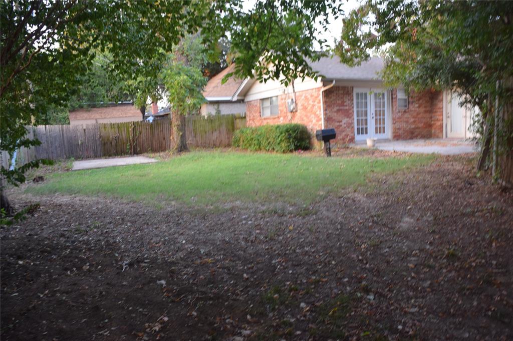 Charming corner lot home surrounded by magnificent trees! This property offers two versatile living areas, with one featuring a floor-to-ceiling brick fireplace and French doors that open to the backyard. The master suite has its own private entrance to the outdoor space. Enjoy the spacious oversized backyard, ready for all your dreams, complete with an open patio. This home holds immense potential! Recent foundation repairs revealed septic leaks, which has not been addressed, estimated at $6,700 (estimate available). Due to the necessary repairs, the seller is seeking cash offers.