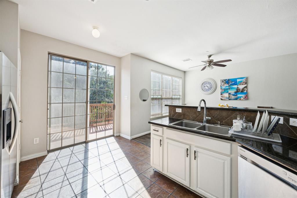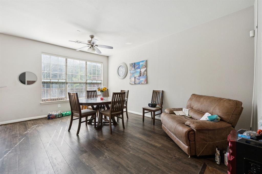 Great location, walking distance to shopping center, 10 min from DFW, this beautiful END UNIT is flooded with natural light from windows on 3 sides. Laminate wood floors make this home move-in ready. Second floor kitchen open to family room features white cabinets & GRANITE counters and breakfast nook. 2 sided fireplace & bay window in living; spacious deck with durable composite deckboards. Bedrooms & laundry on 3rd floor for privacy. OFFICE nook, Cat 6 wiring makes a great work-from-home setup! 1st floor media w over $8k of high-end speakers, wiring, & shades to complete the movie-going experience or extra in suit room with a FULL third bath! Low-maintenance backyard + community pool is the perfect combo! HOA covers front yard maintenance & clubhouse.