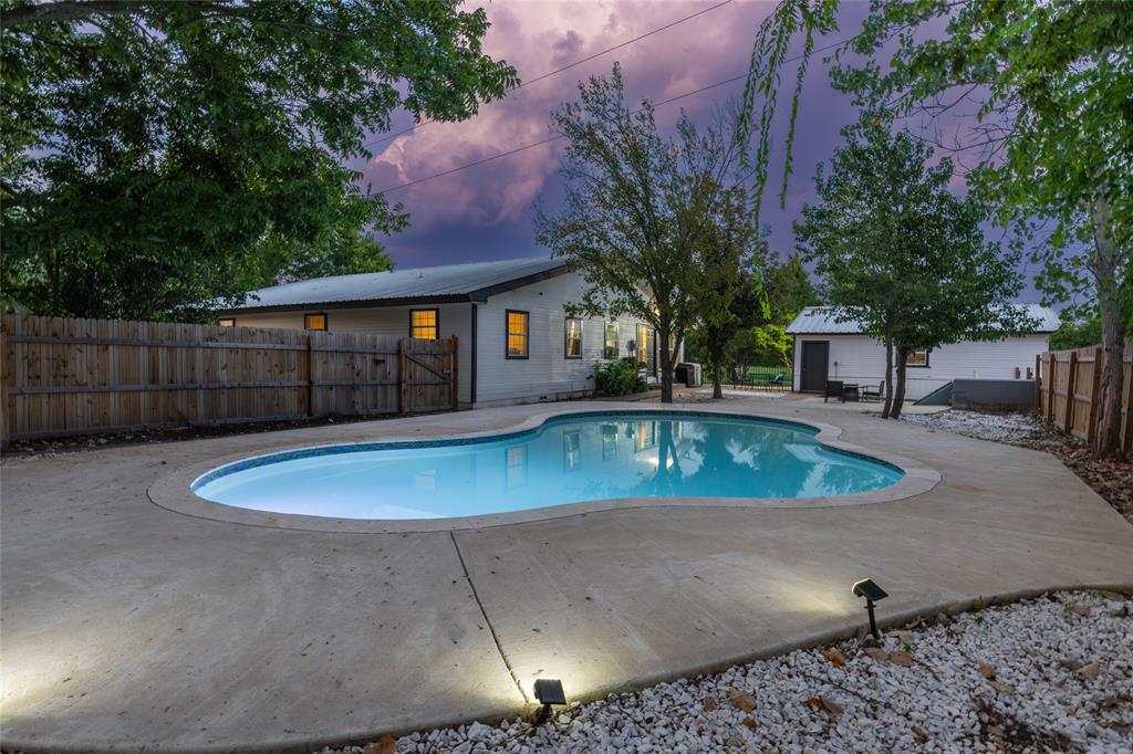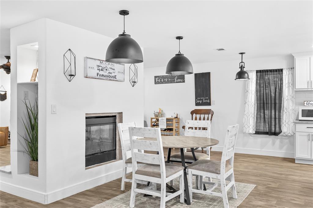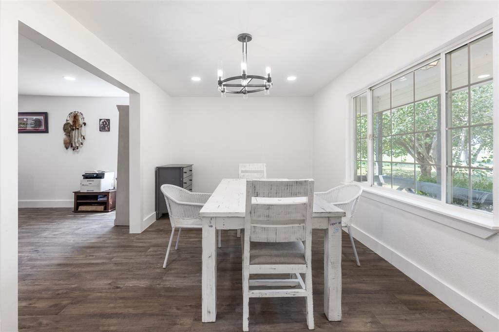 Step into timeless charm and contemporary luxury with this modern farmhouse fully renovated in 2023 nestled on 12 acres of serene countryside featuring a seasonal creek, tranquil pond, and the perfect mix of pasture and trees! Designed with a spacious open floor plan and expansive windows, this home is flooded with natural light! Enjoy cozy evenings by the stunning two-sided fireplace that connects the living room to the breakfast and Kitchen areas! A chef’s dream, the gourmet Kitchen boasts quartz countertops, a large center island with breakfast bar, 36 inch gas range with stainless steel vent, coffee bar with wine cooler, deep farm sink, and double door pantry! Entertain with ease! Property also features a wet bar with butcher block countertop, formal dining, sunroom, and a generously sized office space perfect for those who work from home! This room could be easily utilized as a workout space, playroom, or even converted to a 4th bedroom! Step outside to the huge patio area overlooking the beautiful in-ground pool redone in 2023 with new fence perfect for summer gatherings, watching the evening sunsets, or relaxing under the stars! Additional features include a storm shelter for peace of mind and a detached garage for extra storage or workspace! Quick access to Hwy 380 and Hwy 69 for an easy commute! Move to the country while staying just close enough for a quick trip to town! Don't miss this one!