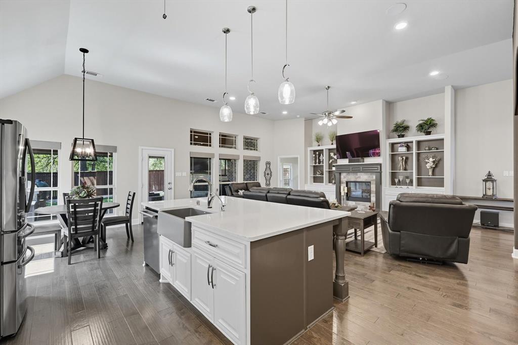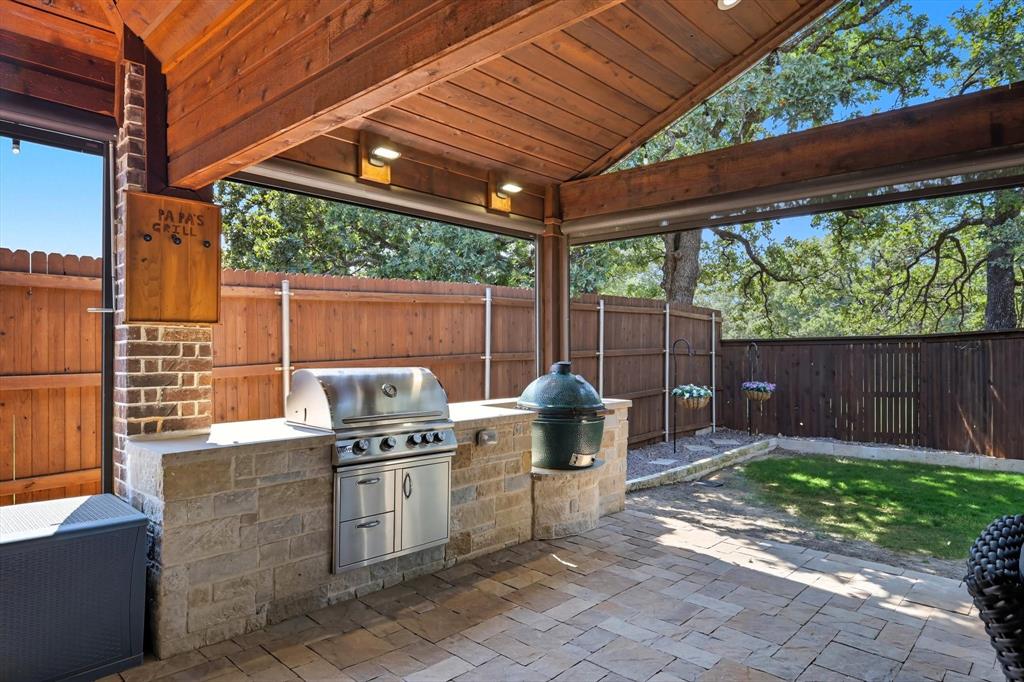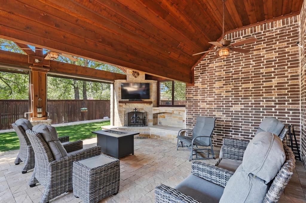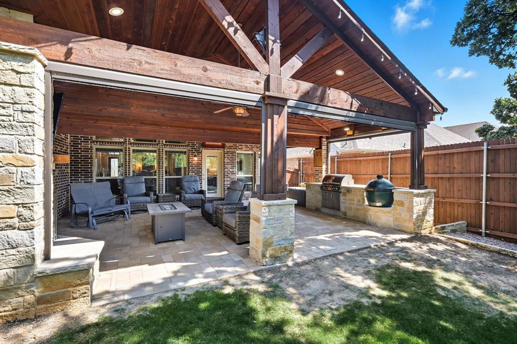 Welcome to your dream home in the highly sought-after Valencia subdivision in Corinth, TX! This beautifully designed, single-story residence offers the perfect blend of comfort, elegance, and functionality. With 3 spacious bedrooms, 3 full bathrooms, an additional powder bath, a study (that could be a 4th bedroom!) and an amazing outdoor patio there’s plenty of room for both everyday living and entertaining guests. Step inside to discover an open floor plan that creates a seamless flow between the living, dining, and kitchen areas—ideal for modern lifestyles – with engineered wood floors throughout the home and carpet in only the secondary bedrooms and primary suite closets. The gourmet kitchen is a true showstopper, featuring stunning quartz countertops, a farmhouse sink, generous cabinet space, a gas cooktop with a pot filler, walk-in pantry and high-end finishes that will impress any home chef. The inviting living area with fireplace is the perfect spot to relax with plenty of room for family and friends. The oversized primary suite has to be seen to be believed with an ensuite bathroom that has a large shower, double vanities and two walk-in closets! The split bedroom layout ensures privacy for all bedrooms. The heart of the home opens up to an incredible covered outdoor living area—complete with an outdoor kitchen, a cozy fireplace and sunshades—perfect for year-round entertaining, relaxing evenings, or weekend gatherings. The 3-car garage provides ample storage and parking. This home is smart - the Savant Home app offers a control center for many features in the home! Located in the picturesque Valencia community, this home offers upscale living in a central location with easy access to local amenities, schools, shopping and dining. Don’t miss your chance to own this exceptional property!