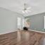 Rich wood floors run throughout most of the home with minimal carpet for easy maintenance. The thoughtful layout places two secondary bedrooms and a hall bath conveniently near the living areas, while the private primary suite boasts its own bathroom and a huge walk-in closet.