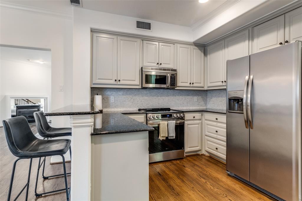 Stylish and sophisticated tri-level townhouse style condominium situated along the esplanade of McFarlin Blvd! Recent cosmetic updates enhance the unknit which boasts hardwood flooring on stairs and all three levels! The first floor consists of the foyer and an attached two-car garage, providing extra security, second floor living areas include the Living Room, anchored by a corner fireplace, Dining Room open to the kitchen via a Breakfast Bar and a nearby Laundry Room! An LG remote control stove and Bosch dishwasher are among recent improvements. Kitchen backsplash installed and all interior walls have been painted during present owner’s tenure. The Laundry Room contains and LG washer and dryer which will convey with the property! The third floor features a spacious primary suite with nicely appointed en suite bath and a walk-in closet. The secondary bedroom, on the same floor, also features an ensuite bath. Walking distance to all facets of SMU, Goar Park and University Park City Hall, Snider Plaza and the McCulloch Middle School-Highland Park Junior High facility. A very nice offering in University Park!