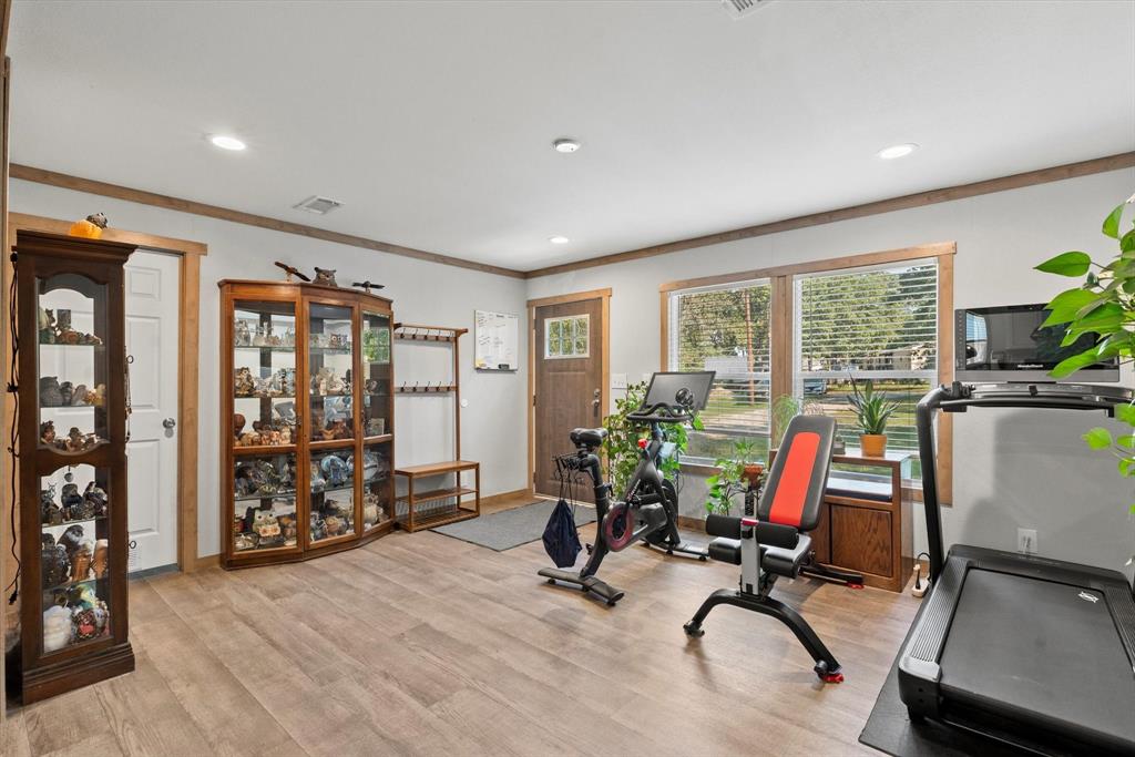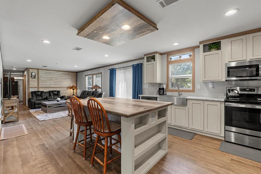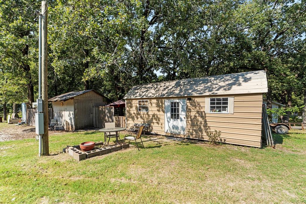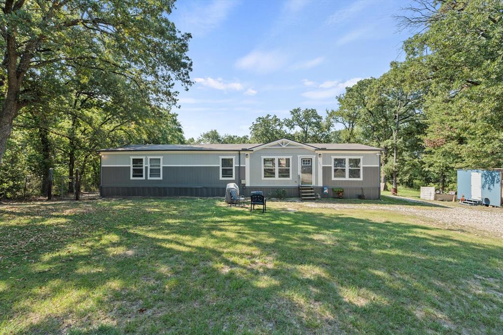 Waterfront! Discover the perfect mix of comfort and country charm on a peaceful .51-acre treed lot. Offering 4 bedrooms, 2 bathrooms, and 1,858 sq. ft.The open floor plan showcases a stunning kitc hen with a large island, farmhouse sink, stainless steel appliances, and abundant storage, all overlooking the spacious living and dining areas. The private owner’s suite features a walk-in closet and spa-inspired bath with dual sinks, a soaking tub, and a separate shower. Step outside to enjoy the tranquility of nature and sweeping waterfront views, while still having all the conveniences you need. A crushed concrete drive leads to multiple outbuildings, including two sheds (10x10 and 21x15) and a versatile 24x14 workshop with sheetrock, plumbing and electrical already in place. Use it as storage, or finish it out into a guest suite, studio, or hobby space. With its serene waterfront setting, modern upgrades, and flexible outdoor amenities, this property is a rare find that offers room to grow and the lifestyle you’ve been dreaming of. Sabine River Authority permit in docs.
