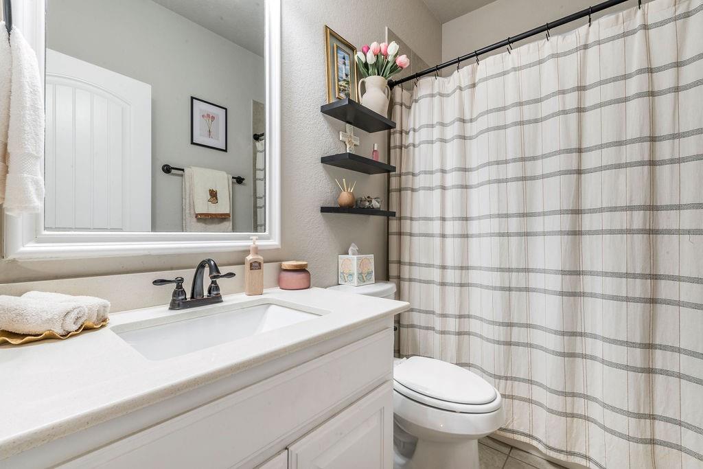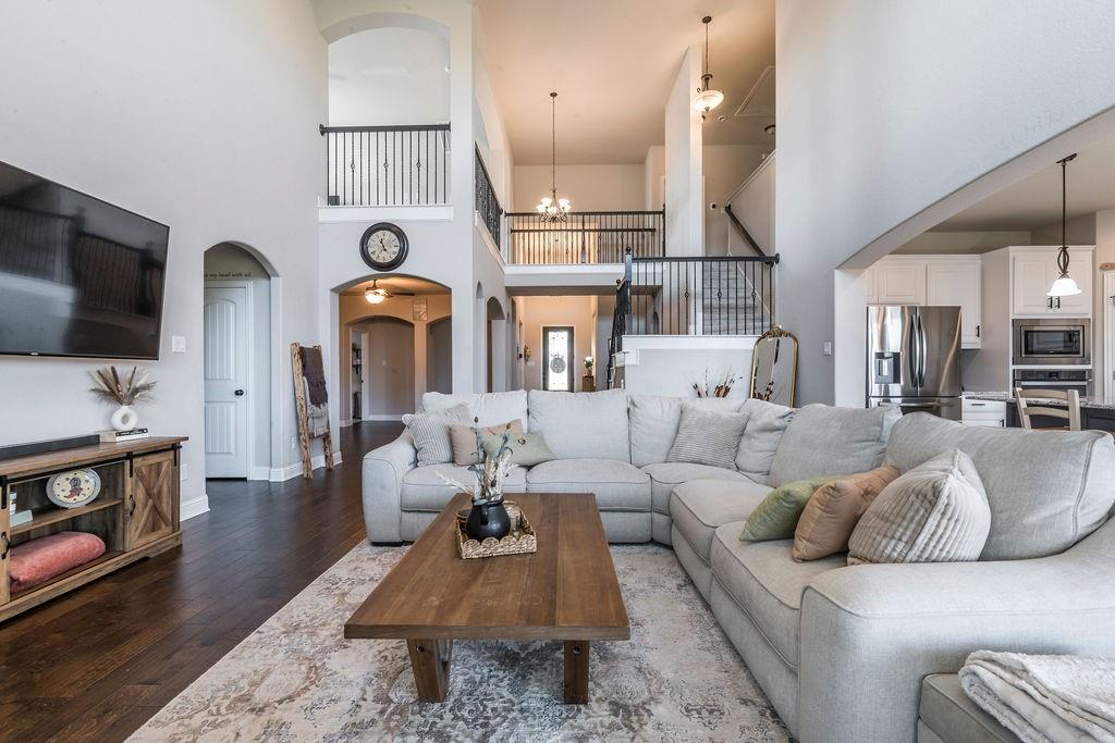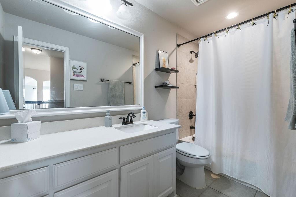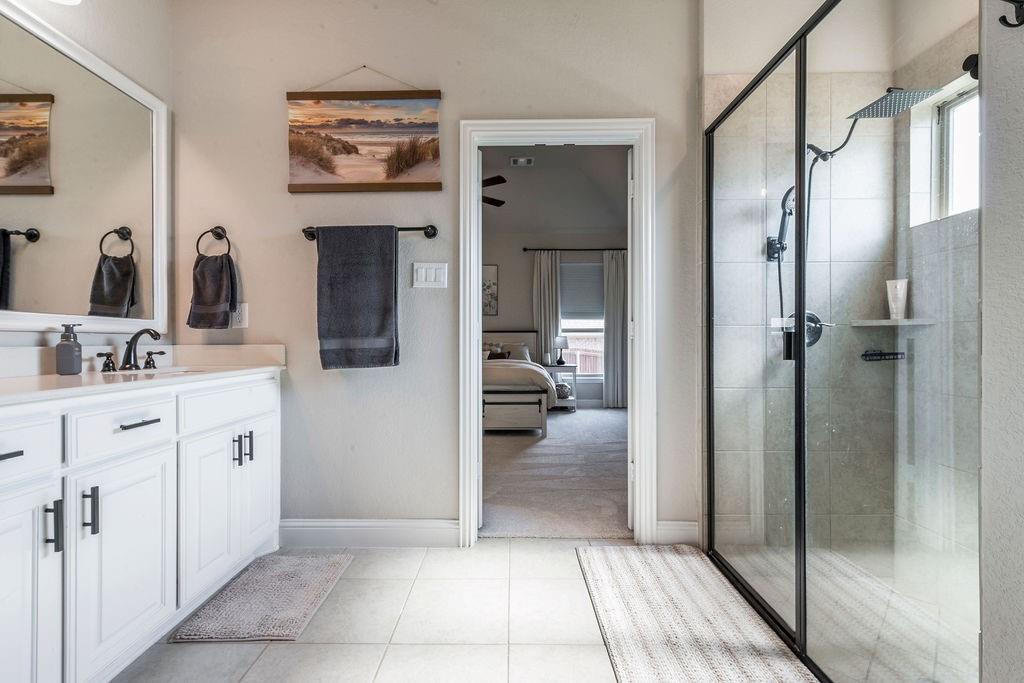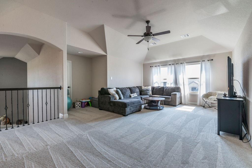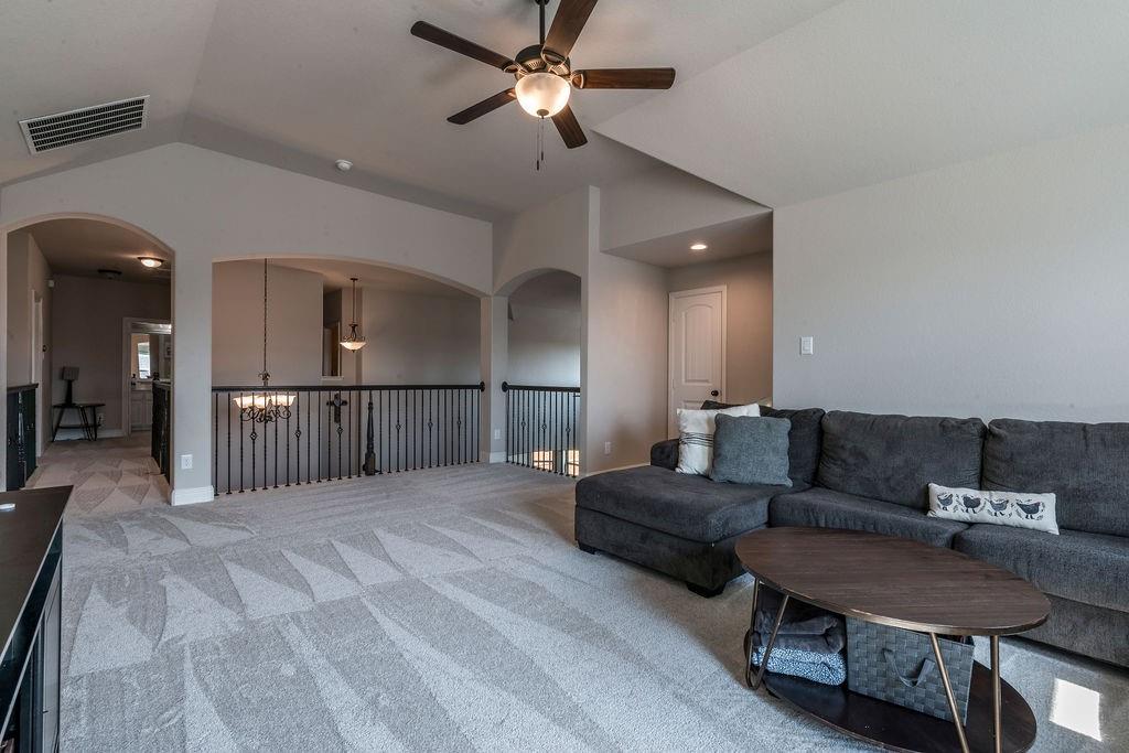 The main-level owner’s suite is a true sanctuary, boasting an oversized shower and ample room to unwind. Upstairs, a spacious game room adds extra living space for entertainment, hobbies, or relaxation.