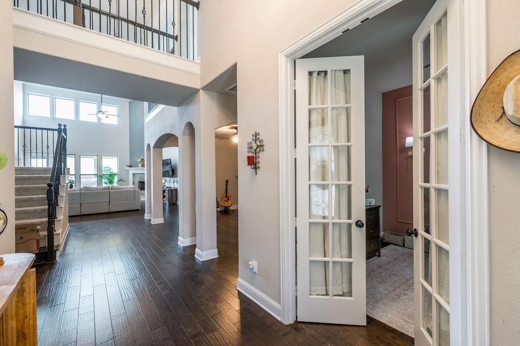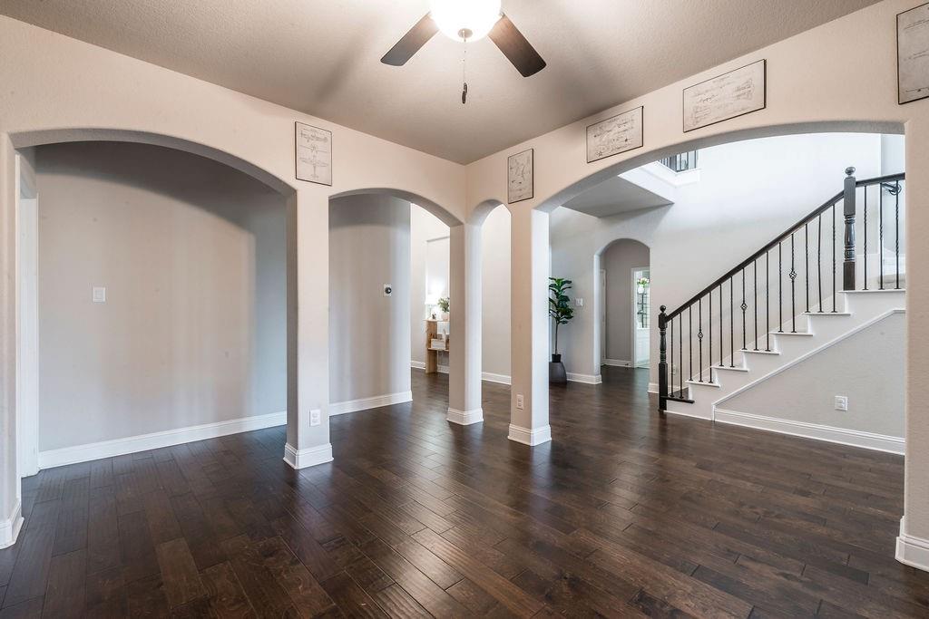 Step inside to discover an open, flowing layout with soaring ceilings and abundant natural light. The heart of the home is the large kitchen, featuring custom cabinetry, granite countertops, and plenty of space for both casual and formal dining. Adjacent, you’ll find a formal dining room plus a separate study — ideal for remote work or quiet retreats.