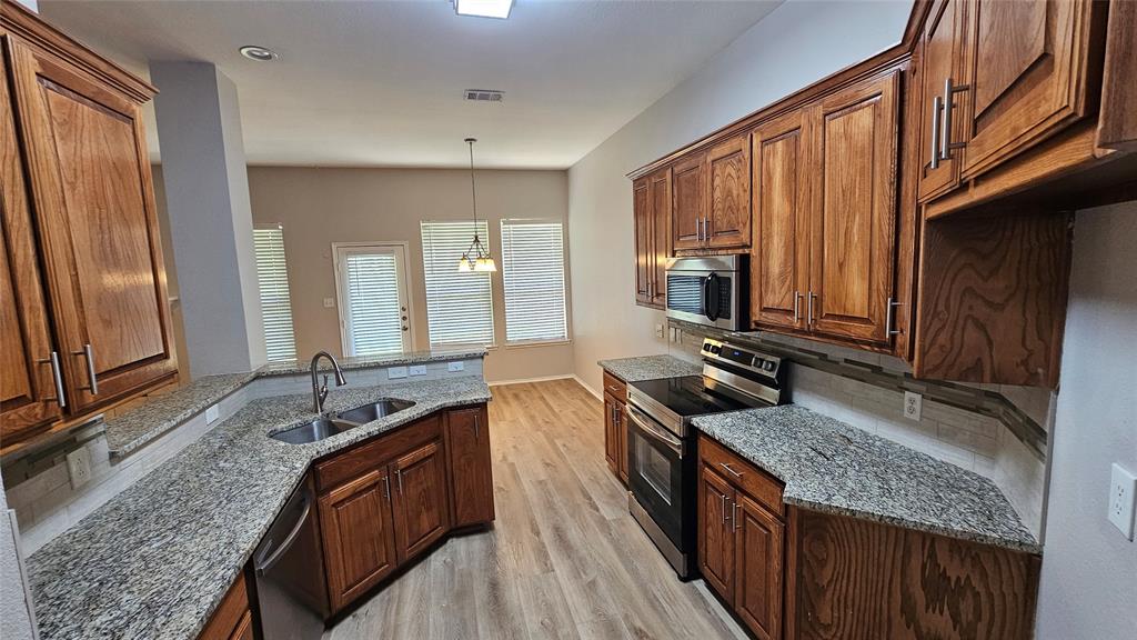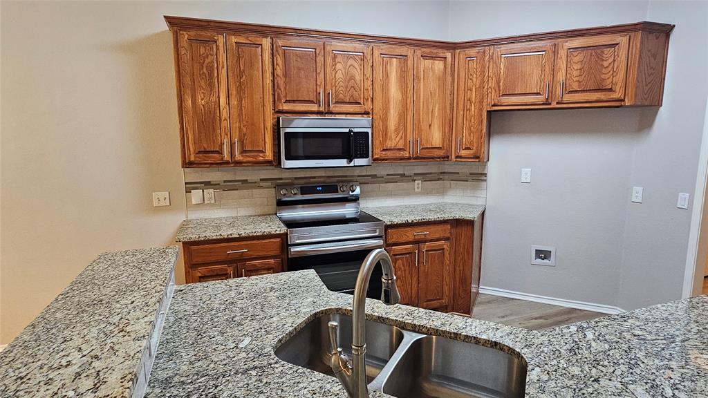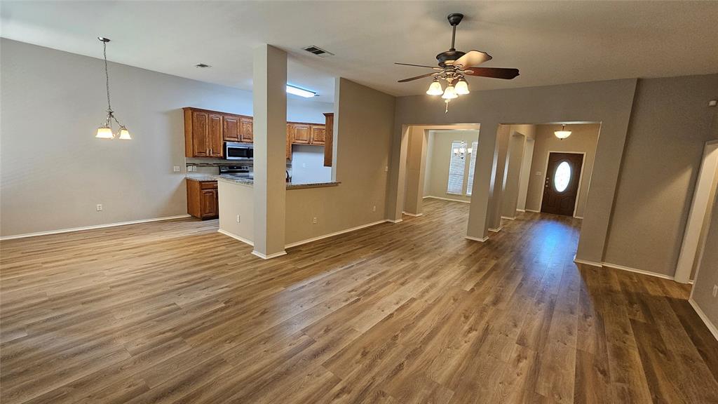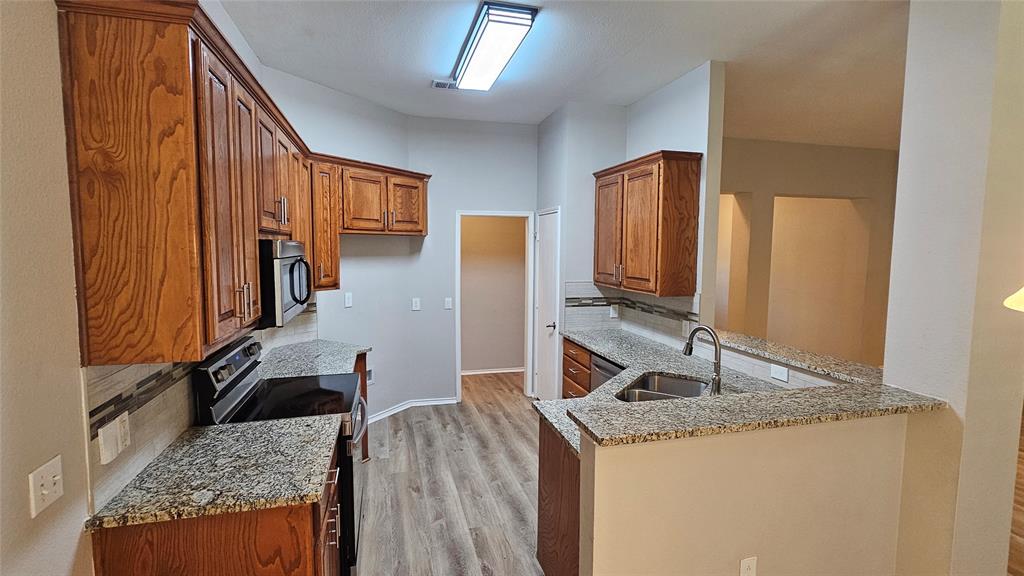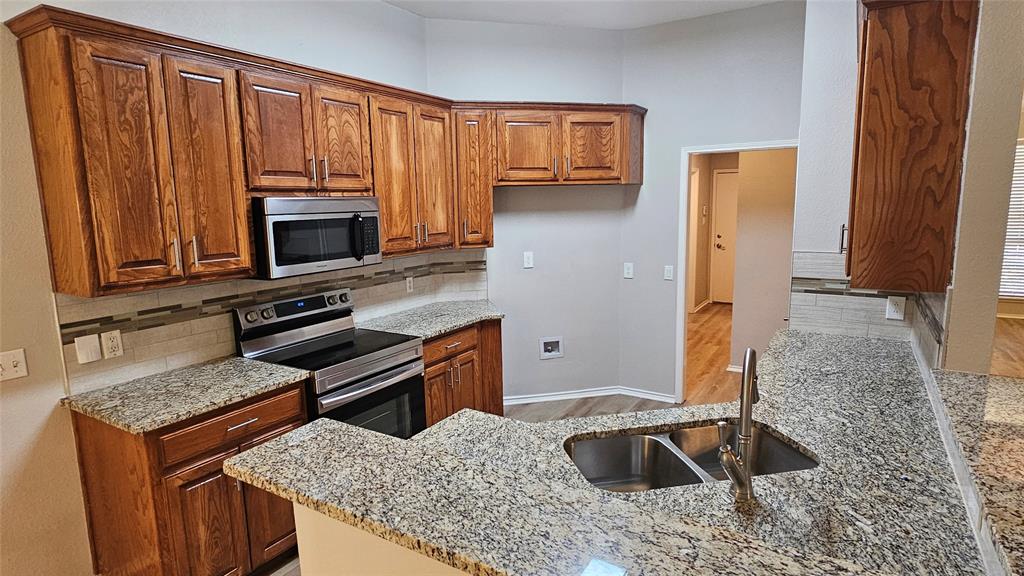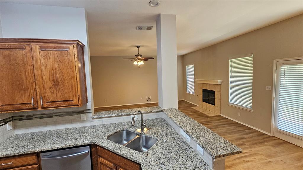 INCREDIBLE 4 bedroom executive home in the heart of Mansfield. BRAND NEW Luxury Plank Flooring throughout. Fresh Paint. NEWER Granite Countertops with stunning backsplash. Large Family room with soaring ceiling and incredible gas fireplace. Cooks delight kitchen with beautiful granite countertops, incredible backsplash, stainless steel appliances, upgraded fixtures, and breakfast bar overlooking the large family room. Elegant formal dining room. Charming breakfast nook. Luxurious master suite with sitting area, HUGE ensuite bath with dual sinks, garden tub, separate shower and super large walkin closet. The primary bedroom is split from the guest bedrooms. All the guest bedrooms are nice sized and feature ceiling fans with light kits. The private backyard includes a lush yard, covered patio, and full automatic sprinkler system. Great location near schools, shopping and restaurants.