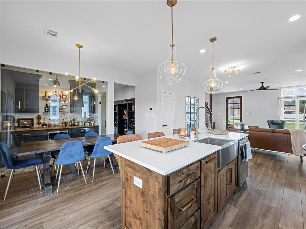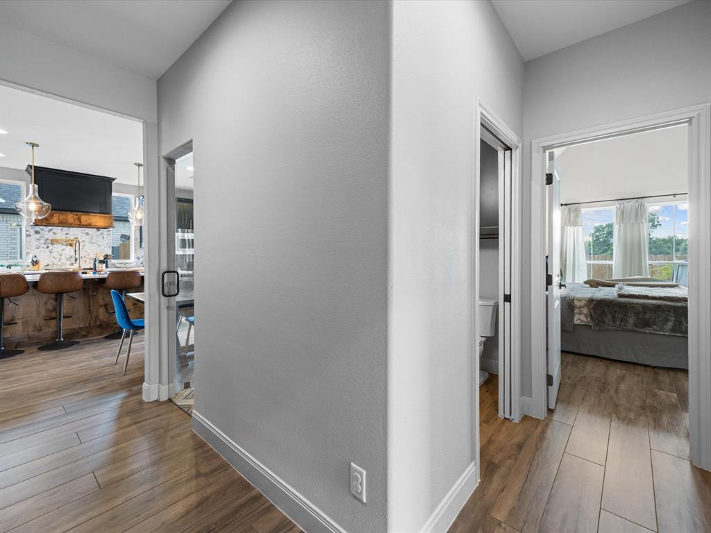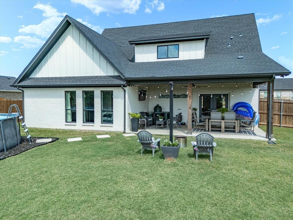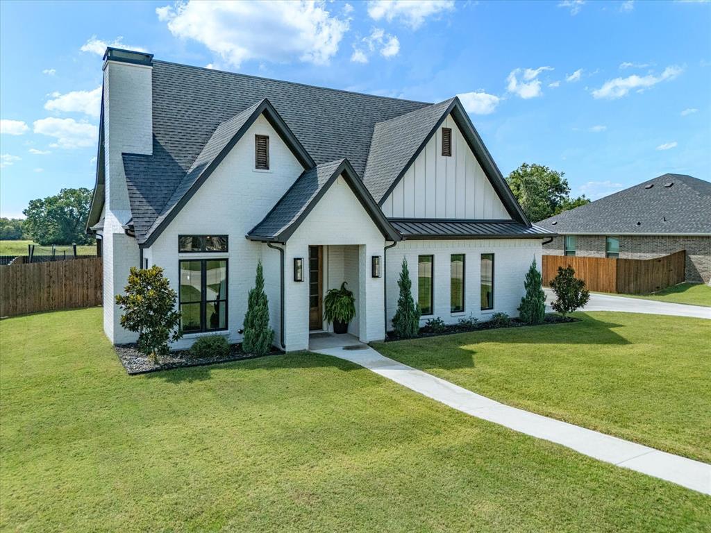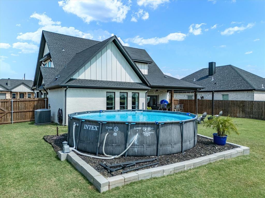 Built in 2022, this modern farmhouse with partial standing seam roof and shingles, offers 4 bedrooms, 2.5 baths, 2148 sq. ft. of open-concept living space. Features include quartz countertops in the kitchen, ceramic tile flooring throughout the main living areas, electric cooktop with pot-filler, large walk-in pantry, and a built-in glass encased butler's pantry with wine refrigerator. The oversized primary suite overlooks the backyard pool and double sink vanity with granite countertop, includes a spacious walk-in shower. Upstairs offers a built-in game room, abundant storage, and spray foam insulation for energy efficiency. The backyard with above ground pool is perfect for entertaining or relaxing after a long day of work. Parking for your recreational vehicle is allowed and the subdivision has no HOA. Situated on just over a quarter acre. with open pasture views behind the property, this home is minutes from downtown Bridgeport where nightlife and community all come together, close to Bridgeport Lake, and convenient to Hwy 114 toward Fort Worth & Dallas or Hwy 380 to Denton & Plano. There won't be another home on the market like it, so schedule your showing today so you can get your VIP walk-thru to the property of your dreams. Buyer and buyers agent to verify all information including but not limited to square footage, room dimensions, lot size, schools and restrictions. Survey available