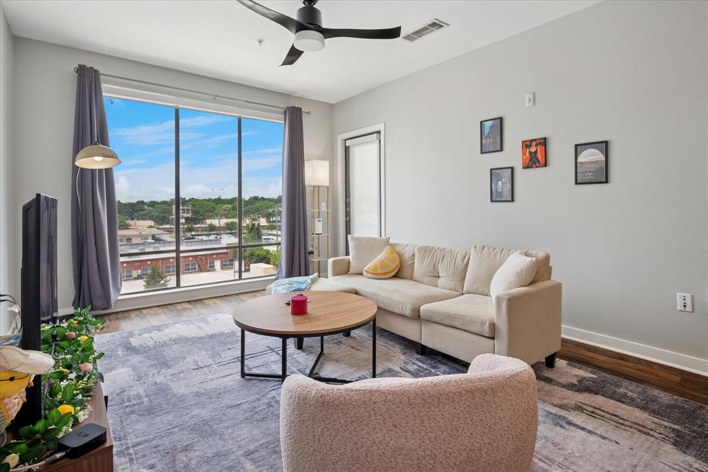 Famous for being one of Carroll Shelby’s garages, this fabulous contemporary building located in the heart of Dallas has been re-imagined into a chic, modern living space located within walking distance to SMU, Mockingbird Station, the Katy Trail, restaurants, and shopping! The entire building was completely updated in 2016 and this unit has been impeccably maintained. 1 bed, 1 bath featuring an open floor plan with floor to ceiling windows, custom remote control motorized blinds, and a private balcony overlooking the SMU campus & Bush Library, the views at sunset are stunning. With sleek lines and modern updates, the unit is flooded with natural light. Washer, dryer, and refrigerator all under a year old and are included if buyer desires. Building amenities include a resident gym, a community lounge with kitchen and living room, a large outdoor grilling & gathering area, and a fenced dog run. Resident parking garage is secure, gated, and includes one reserved parking spot. This is a gorgeous unit in a gorgeous building in an unbeatable Dallas SMU location!