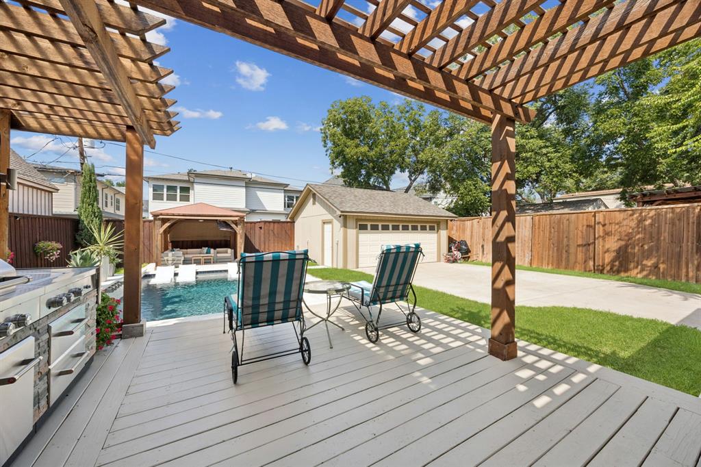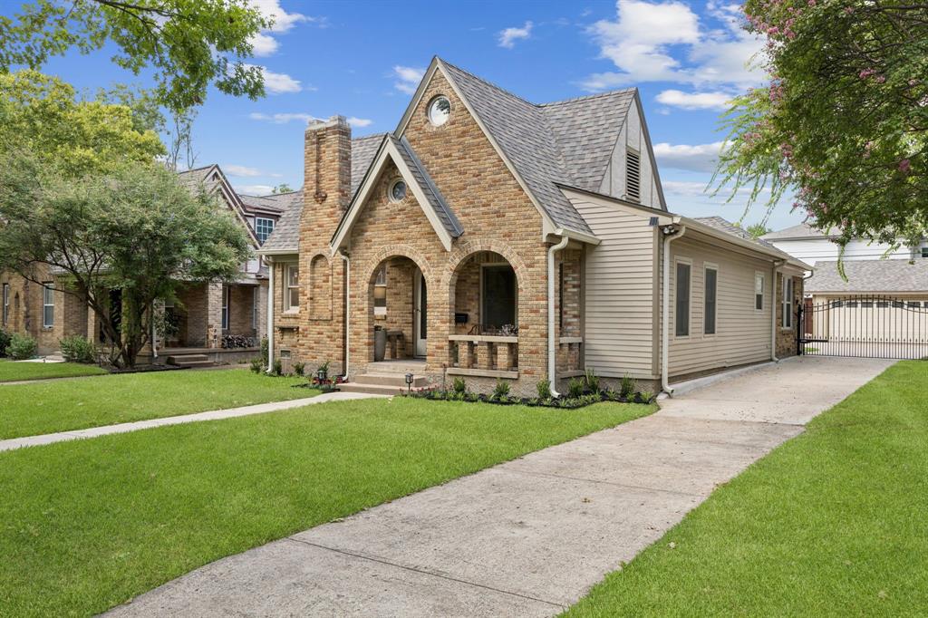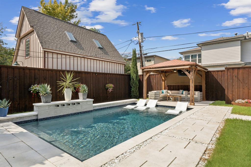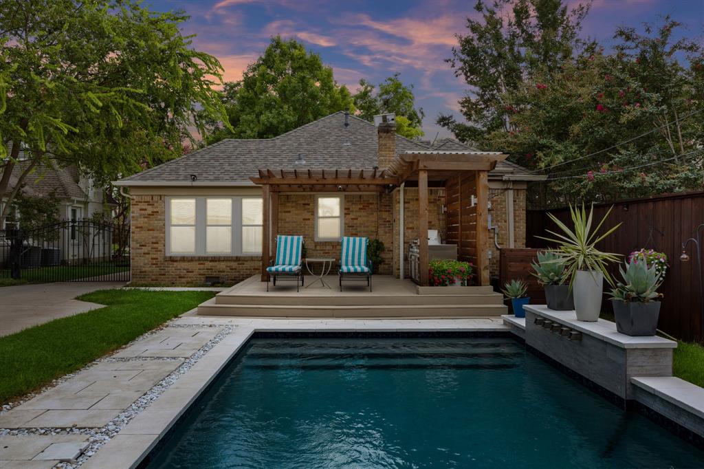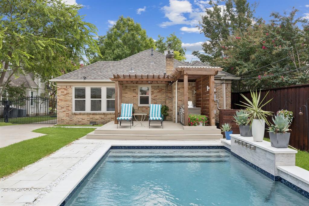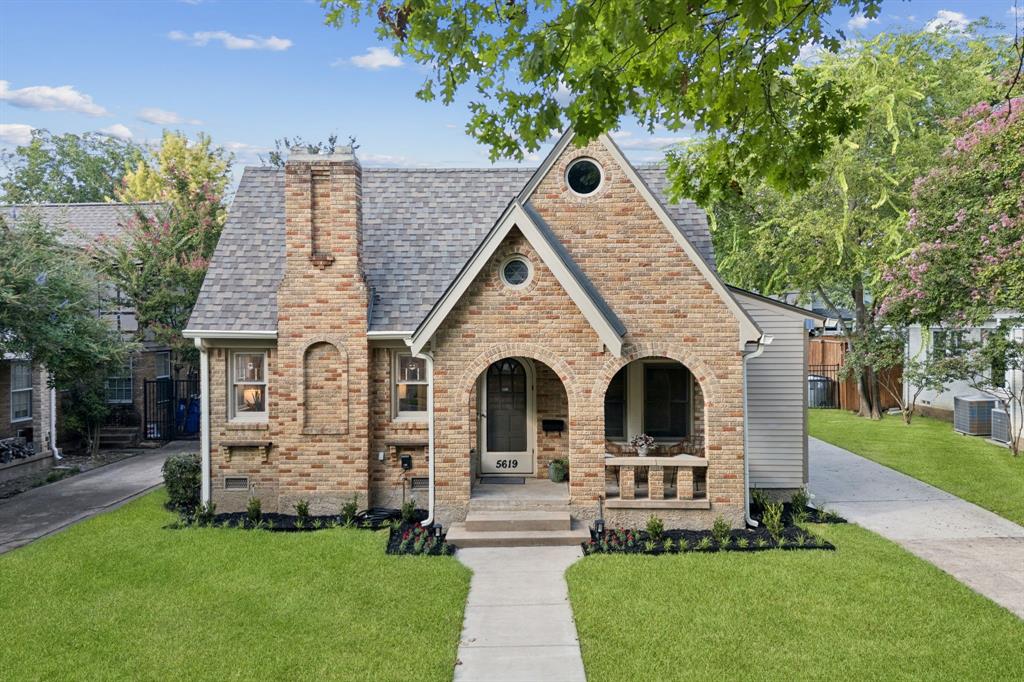 Welcome to 5619 McCommas Boulevard, an updated Tudor-style residence in the sought-after Greenland Hills historic district, also known as the M Streets. Built in 1928, this home blends preserved character with thoughtful modern upgrades across approximately 1,600 square feet, featuring three bedrooms & two bathrooms. Inside, original hardwood floors—refinished in 2023—create a timeless backdrop for the inviting living spaces. The living room has wall ports for a mounted TV & ceiling-mounted surround sound, enhancing both comfort & entertaining. The remodeled kitchen showcases marble counters, a coffee bar, induction cooktop & oven, & newer stainless appliances including a refrigerator and dishwasher. The compact en-suite bath in the primary bedroom offers a floating vanity with dual sinks & a shower with rain head and body jets. Custom closet organizers maximize storage while adding a tailored finish throughout the home. Recent improvements ensure peace of mind, including a new roof & gutters (2022), updated 200-amp electrical service, tankless hot water heater, smart-home lighting, added insulation, Simplisafe security system, new garage door, a remote-controlled gate, & a Tesla-EV charger in the garage. The backyard is designed as a private retreat with a 13' x 23' pool featuring a fountain & customizable lighting, a 12' x 14' cabana with TV and surround sound, sectional seating, & a deck with a built-in gas grill beneath a lighted pergola. An eight-foot privacy fence encloses the yard, while the redone driveway & sidewalk (2018) add curb appeal & convenience. This property captures the best of both worlds: classic M Streets charm paired with modern upgrades & outdoor living designed for relaxation & entertaining. With its combination of history, updates, & a true backyard oasis, this is a rare opportunity in one of Dallas’s most beloved neighborhoods.