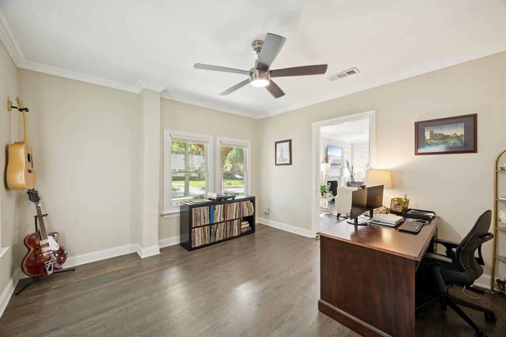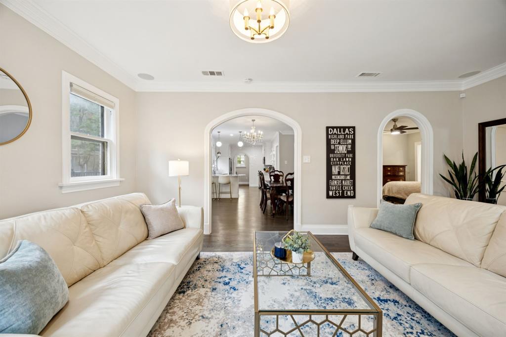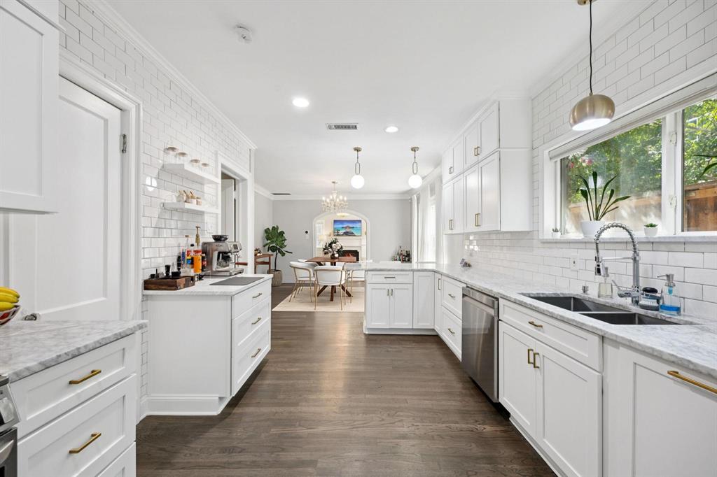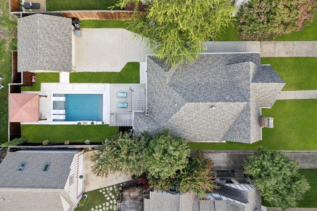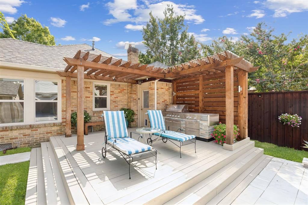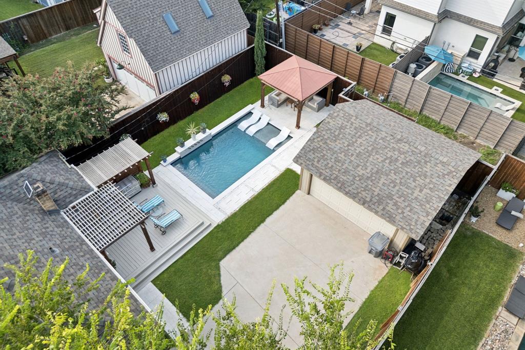 Welcome to 5619 McCommas Boulevard, an updated Tudor-style residence in the sought-after Greenland Hills historic district, also known as the M Streets. Built in 1928, this home blends preserved character with thoughtful modern upgrades across approximately 1,600 square feet, featuring three bedrooms & two bathrooms. Inside, original hardwood floors—refinished in 2023—create a timeless backdrop for the inviting living spaces. The living room has wall ports for a mounted TV & ceiling-mounted surround sound, enhancing both comfort & entertaining. The remodeled kitchen showcases marble counters, a coffee bar, induction cooktop & oven, & newer stainless appliances including a refrigerator and dishwasher. The compact en-suite bath in the primary bedroom offers a floating vanity with dual sinks & a shower with rain head and body jets. Custom closet organizers maximize storage while adding a tailored finish throughout the home. Recent improvements ensure peace of mind, including a new roof & gutters (2022), updated 200-amp electrical service, tankless hot water heater, smart-home lighting, added insulation, Simplisafe security system, new garage door, a remote-controlled gate, & a Tesla-EV charger in the garage. The backyard is designed as a private retreat with a 13' x 23' pool featuring a fountain & customizable lighting, a 12' x 14' cabana with TV and surround sound, sectional seating, & a deck with a built-in gas grill beneath a lighted pergola. An eight-foot privacy fence encloses the yard, while the redone driveway & sidewalk (2018) add curb appeal & convenience. This property captures the best of both worlds: classic M Streets charm paired with modern upgrades & outdoor living designed for relaxation & entertaining. With its combination of history, updates, & a true backyard oasis, this is a rare opportunity in one of Dallas’s most beloved neighborhoods.