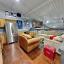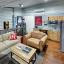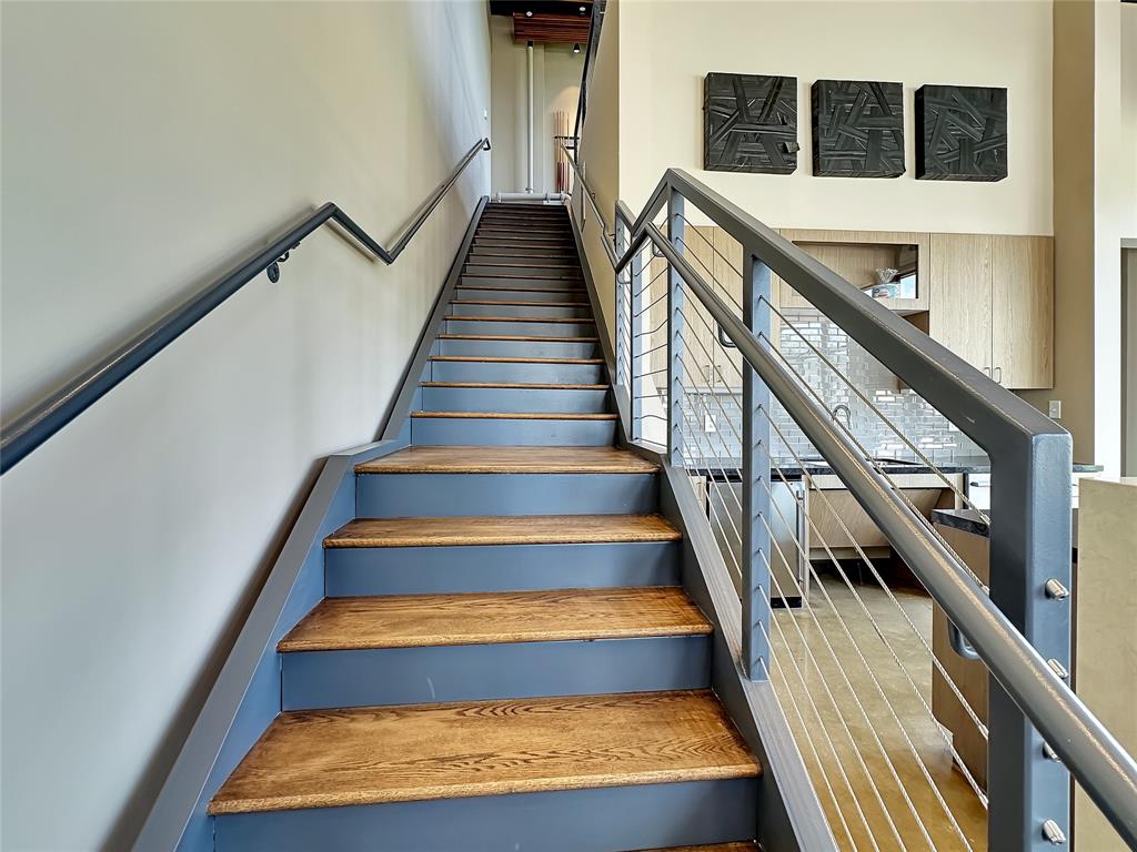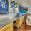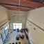 The upstairs loft is 13x14 and has a kitchenette with a sink and fridge as well as a working desk area, large white board space and a sitting area with a sofa, coffee table and TV that conveys.