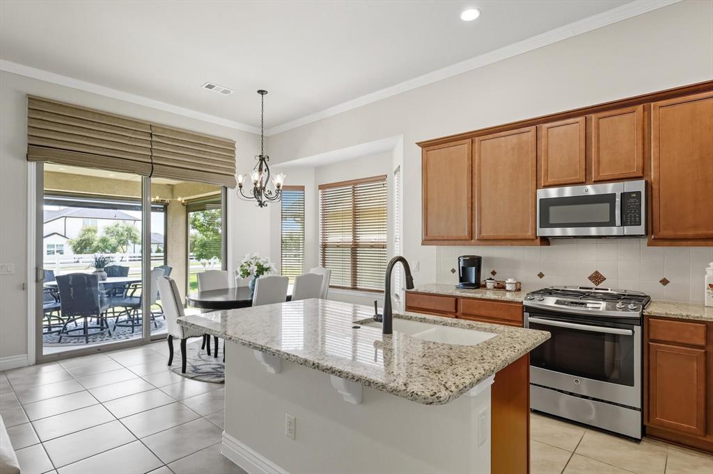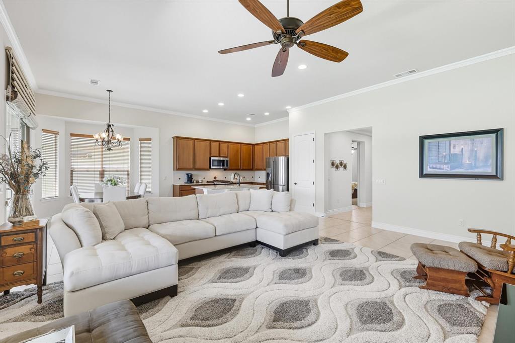 First time on the market! This wonderful Briscoe Model could be the perfect home for you. Two bedrooms, 2.5 bathrooms, den and extended 2-car garage. The open floorplan is set up for entertaining: Kitchen is appointed with granite countertops. soft-close drawers, island seating, GE gas range, microwave, dishwasher, and breakfast area with bay window. The expanded walk-in pantry provides generous storage. Personal touches include crown molding in the kitchen, living room and primary bedroom; ceiling fans throughout, bay windows in the breakfast area, primary and second bedrooms. Primary bedroom suite features a spacious 7.5 x 6 walk-in closet with custom organizing system, private door to the covered patio, and ensuite bathroom with double vanity and custom shower. Relax on your 27 x 10 screened patio, under the ceiling fan while watching your favorite sports team. Robson Ranch is a 55+ Active Adult Community with Golf, Tennis, two Swimming Pools, a Fitness Center & much more. There is something for everyone ! It's time to start your next adventure! * All information is deemed reliable but is not guaranteed and should be independently verified *