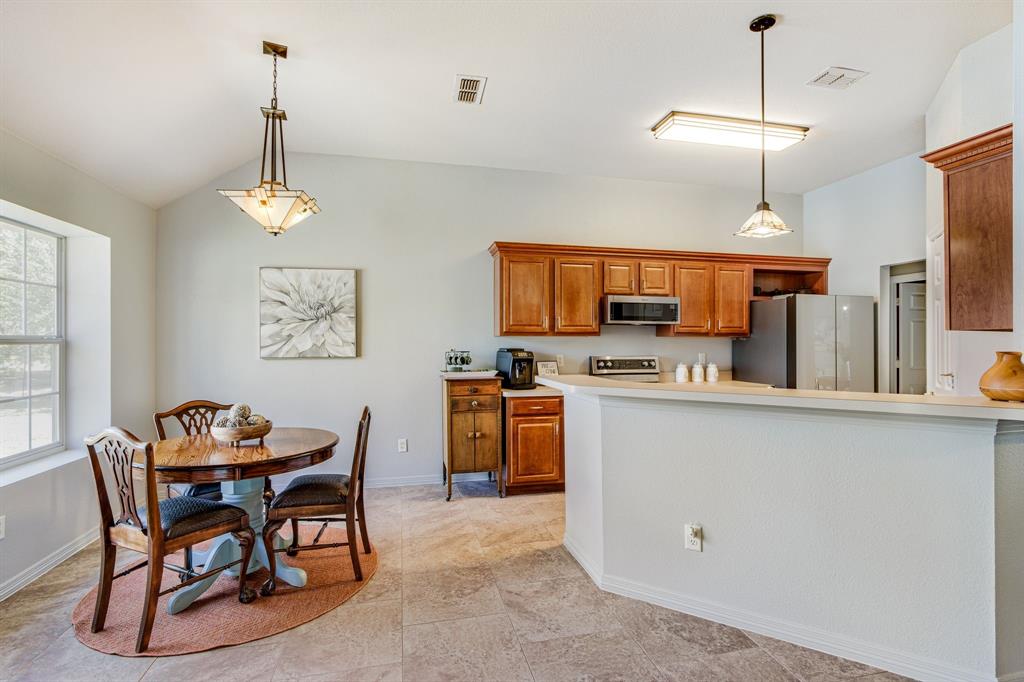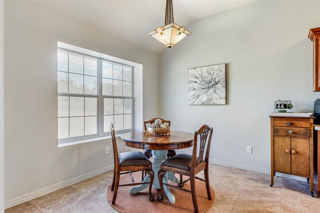 Rare Opportunity to own a Home with Conventional Floor Plan that includes 4 Bedrooms, 3 Baths, 2 Living Areas and 2 Dining Rooms on 0.861 acres at an AFFORDABLE PRICE! NO HOA plus terrific Northwest ISD Schools. Don’t settle for a small lot and the limitation of an HOA when you can enjoy sitting outside by your fire pit area in the privacy of your own back yard! New Roof in 2024, Wood Look Tile Flooring, Updated Lighting, Backyard FULLY Fenced, Extended Driveway with Oversized Garage. At approximately 150' wide and 250' deep the yard has plenty of space for a pool, workshop! Windows on front of home replaced in 2020! The Formal Dining is large enough for an 8 Chair Table plus Buffet! The Living Room is Open and has a 10 foot ceiling plus Wood Burning Fireplace. The Kitchen has Stainless Steel Appliances with a Kitchen Aid Range, Slim Microwave and Dishwasher replaced in 2020. The Breakfast Area is bright with natural light and is the perfect spot for sipping your morning coffee while watching the deer roam through the land behind your back yard. The Texas Sized Primary Bedroom is a Suite with Plenty of room for a King Size Bed, Large Nightstands and 2 Dressers!! The bath has separate vanities with a Tub & Walk In Shower plus an Oversized Closet for this size of home. Three Bedrooms are located on the west side of the home & includes a full bath. The Spacious 2nd Living Area allows you to get creative, currently it’s a music room, studio but it could be a Game Room, Media Room, Art, Activity Room or even a Study. This area also includes a half bath which provides you the ability to have multiple generations comfortably living together. The Backyard is Huge and has a fence allowing for the separation of pets from the rest of the property which is surrounded by trees. Don’t miss your chance to live 15 minutes from I-35W in the peaceful surroundings of rural living, Come Join us for the Open House to take your 1st Look.