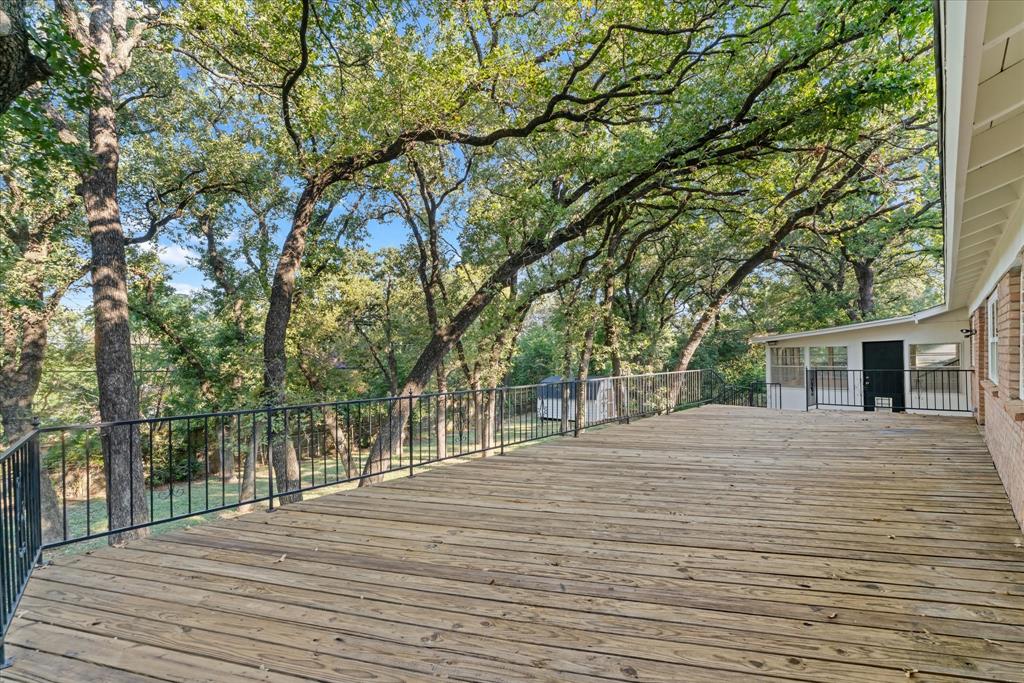 Step outside to the expansive deck, perfect for relaxing or hosting gatherings, surrounded by mature trees that provide shade and privacy.