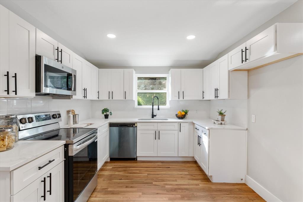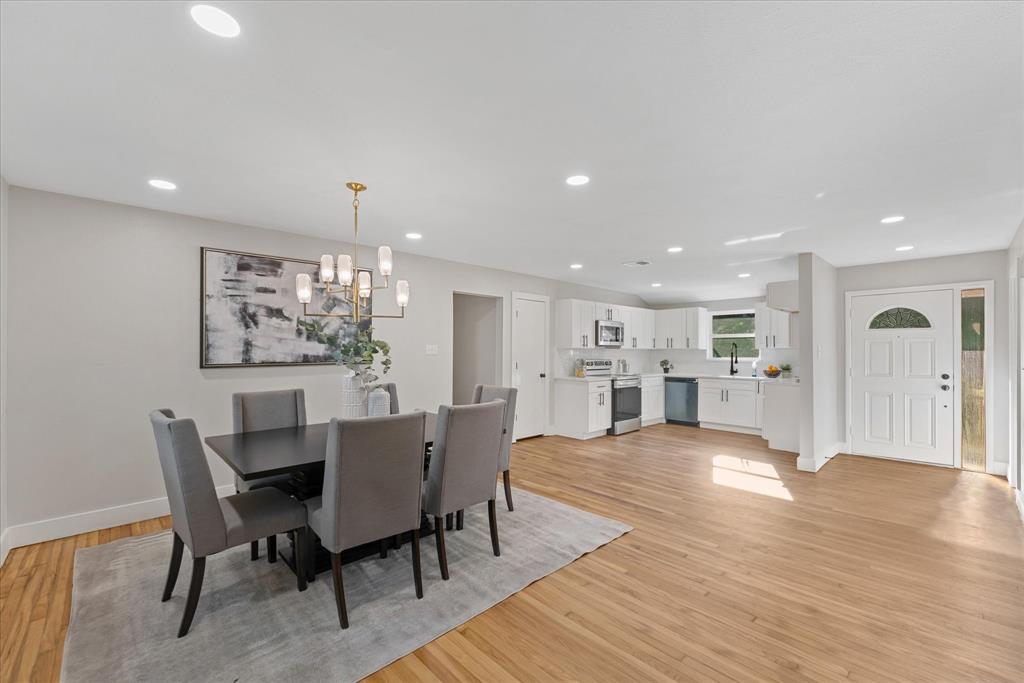 Inside, you’ll fall in love with the beautiful hardwood floors, all-new doors and trim, and abundant natural light from new windows. The open-concept floor plan seamlessly connects the living, dining, and kitchen areas, creating the ideal layout for both everyday living and entertaining guests.