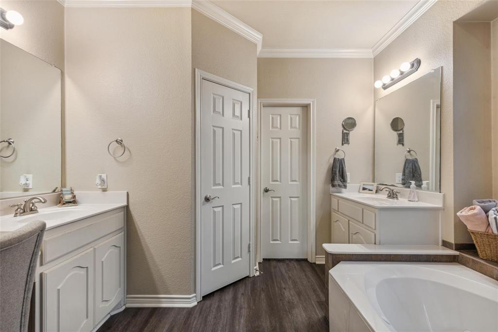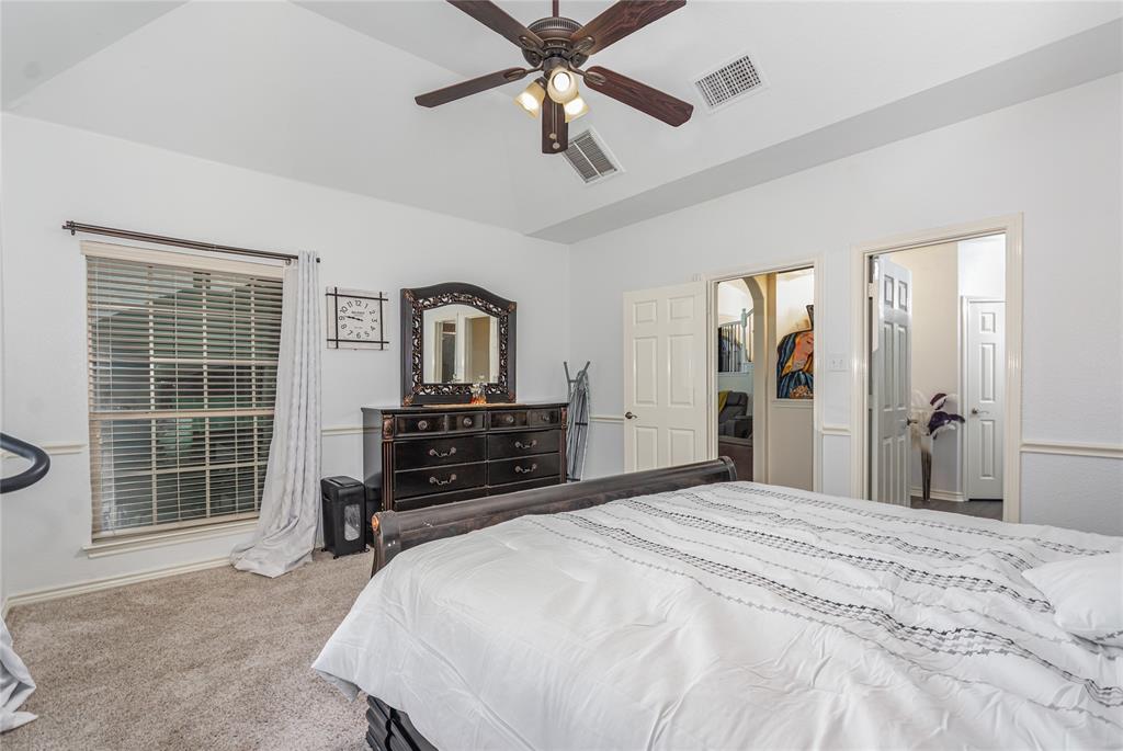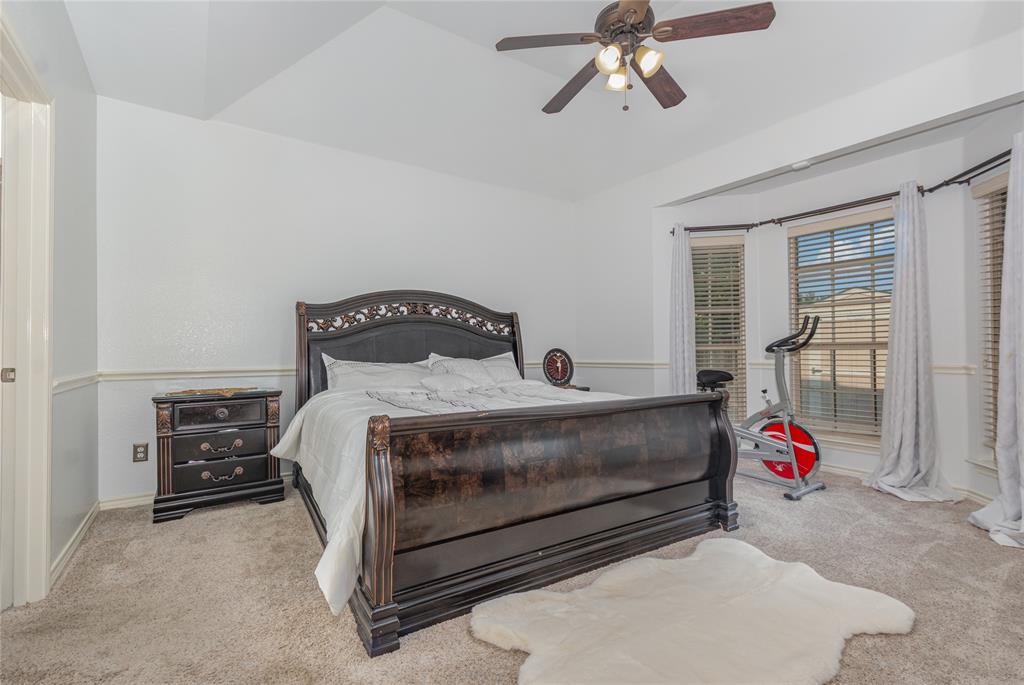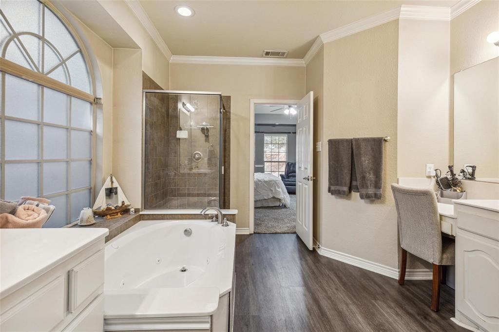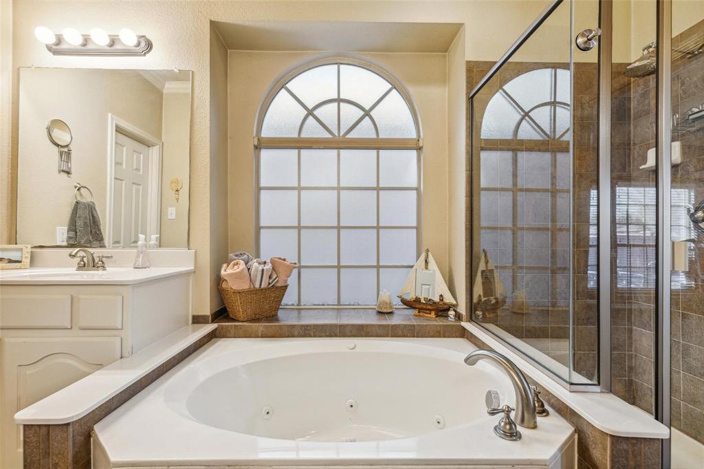 The primary suite is a private retreat with a large jetted tub, separate glass-and-tile shower, dual sinks with separate vanities, and a generous walk-in closet. An additional bedroom and full bath complete the main floor. Upstairs, you’ll find a versatile game room, three secondary bedrooms, and another full bath.