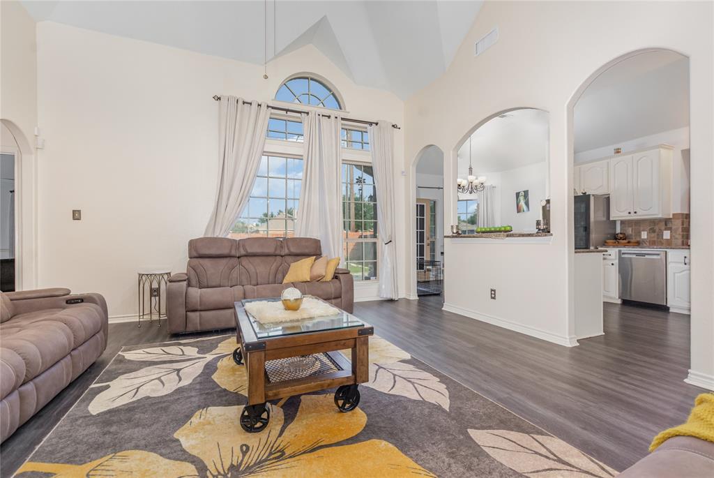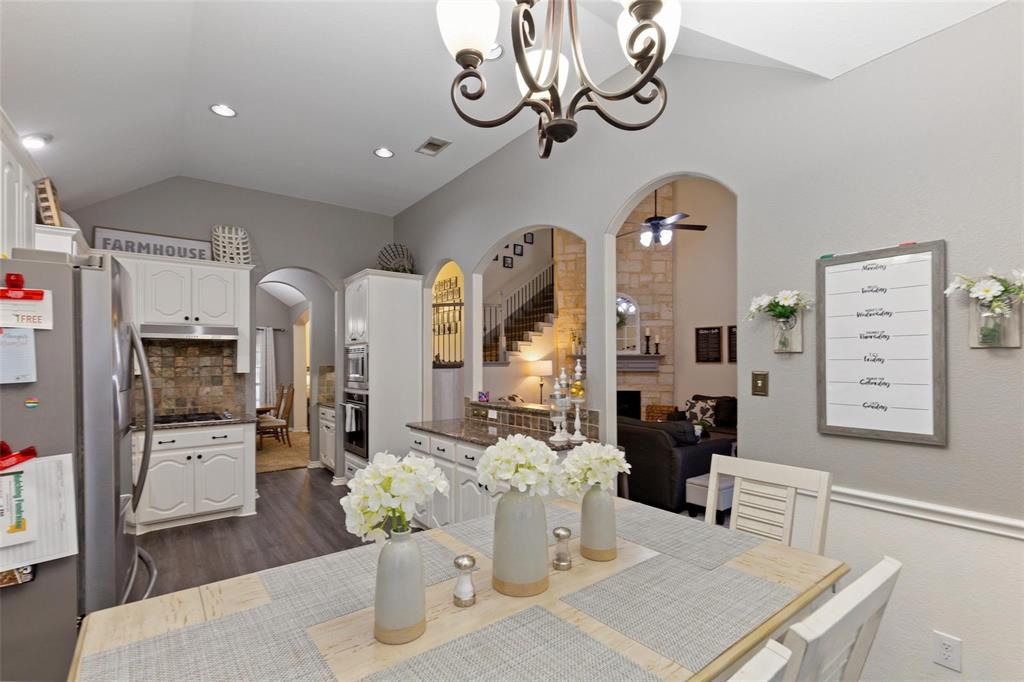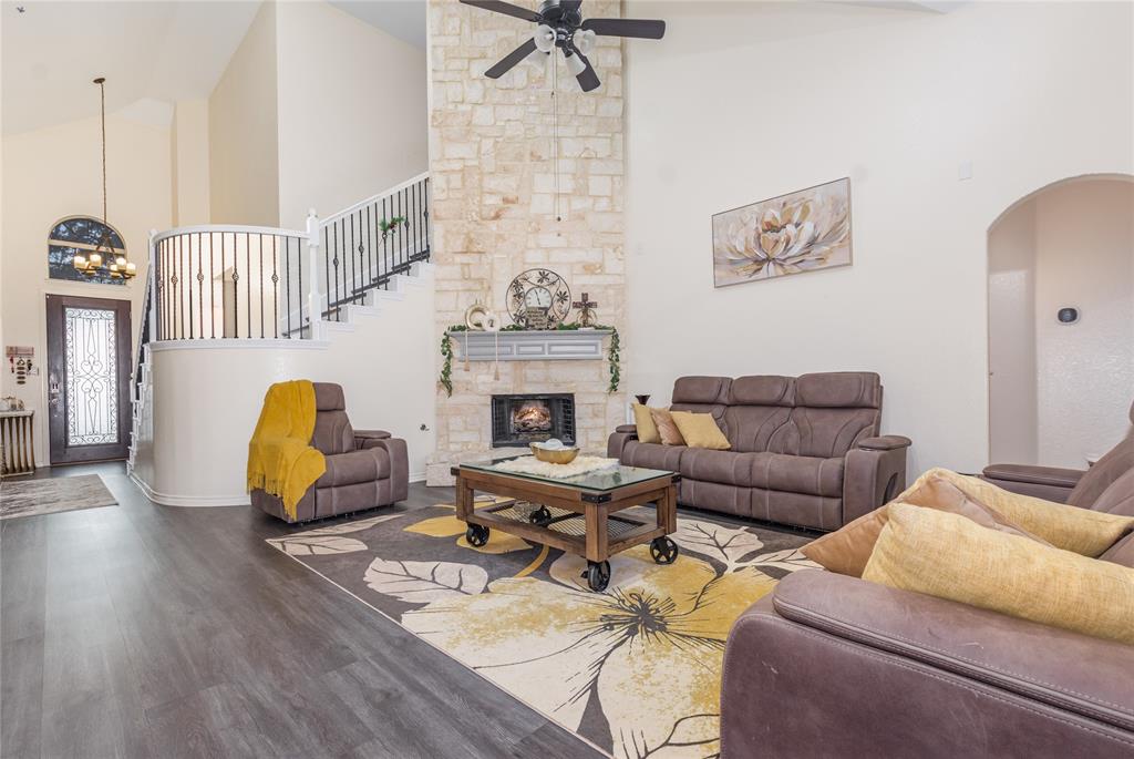 Nestled in the highly sought-after Villages of Woodland Springs and just minutes from I-35W and Highway 170, this charming two-story, 5-bedroom, 3-bath home offers both comfort and convenience. The open floor plan is highlighted by neutral paint tones, luxury vinyl plank flooring, vaulted ceilings, and a stunning floor-to-ceiling stone fireplace in the living room.