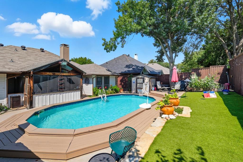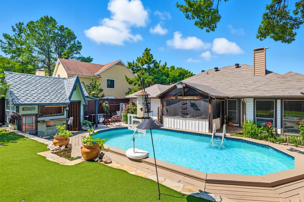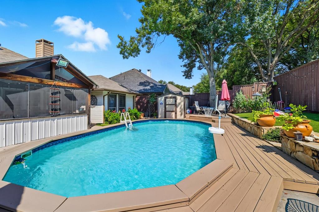 Enjoy the serenity of a quiet neighborhood while basking in the luxury of your private backyard oasis, complete with a refreshing pool. The property boasts a versatile she shed, perfect for a home office, art studio, or personal sanctuary. A second storage building adds extra space for tools, hobbies, or seasonal items. With a large covered screened in back patio—perfect for outdoor entertaining, family gatherings, or weekend cookouts.