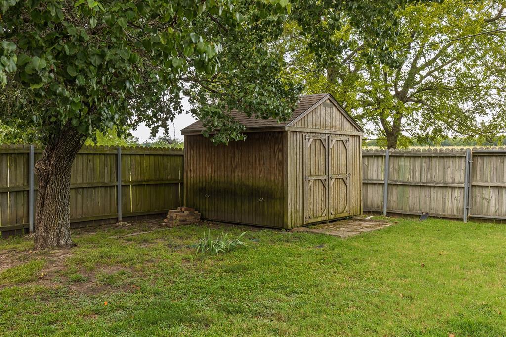 Cozy, comfortable, and move in ready! This charming 3 bedroom, 2 bath home offers a welcoming layout with split bedrooms for added privacy. The spacious living area features a wood-burning fireplace, perfect for relaxing evenings. The kitchen comes fully equipped with an electric stove, built in microwave, dishwasher, and a breakfast nook that overlooks the front yard. The master suite includes a tub and shower combo and a generous closet. Two additional guest bedrooms and a full bath provide space for family, guests, or a home office. Step outside to a large privacy-fenced backyard with a covered patio, ideal for outdoor gatherings. A separate storage building adds convenience for tools, toys, or hobbies. With a great flow and warm, functional spaces throughout, this home offers both comfort and practicality. Don’t miss your chance to see it, schedule a showing today!