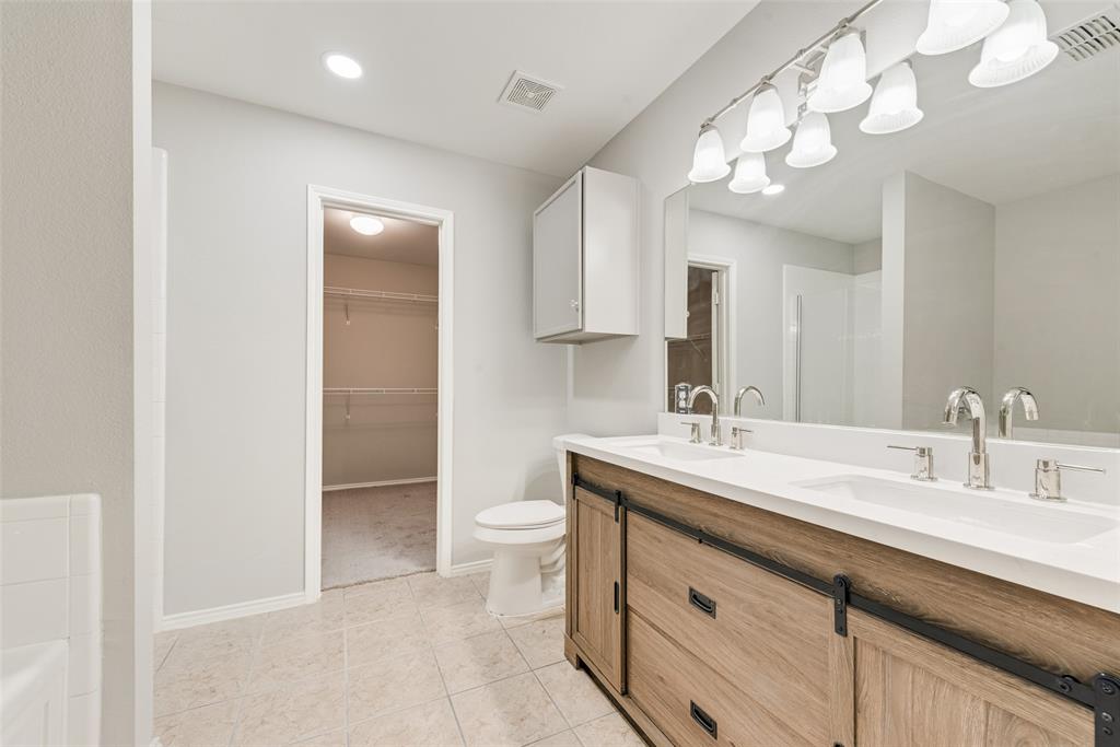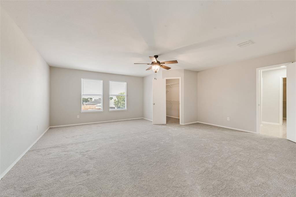 Sitting on a spacious corner lot, the property is fully fenced with a gated driveway. Upstairs, the expansive master suite features two oversized Texas-sized closets.