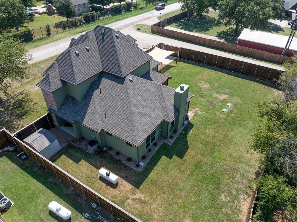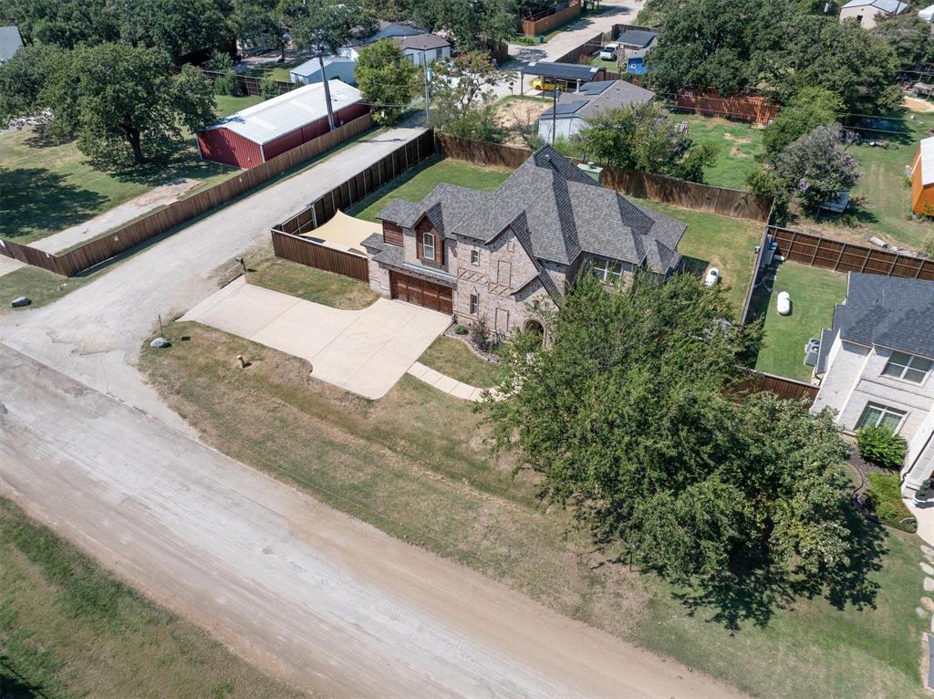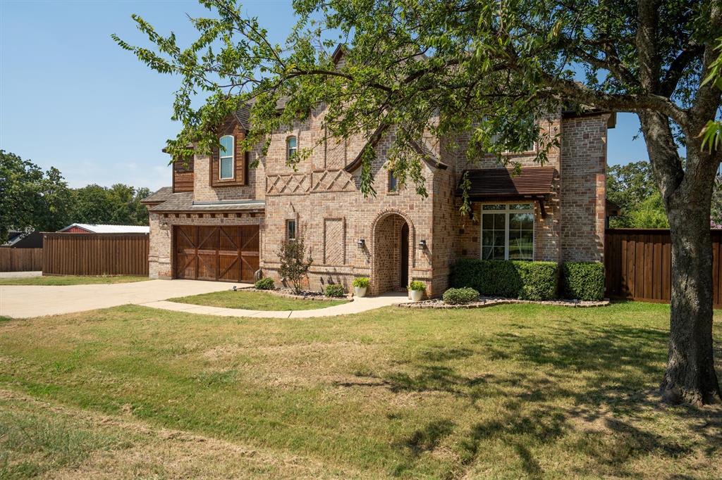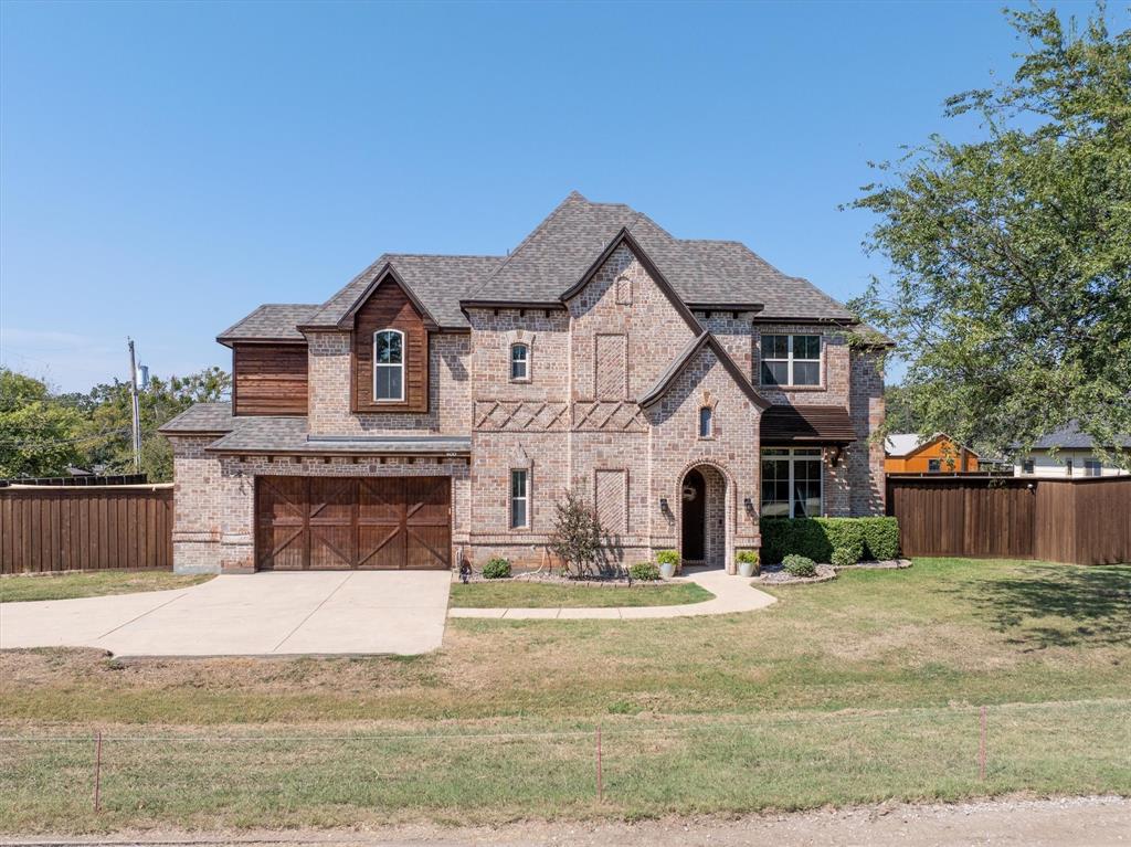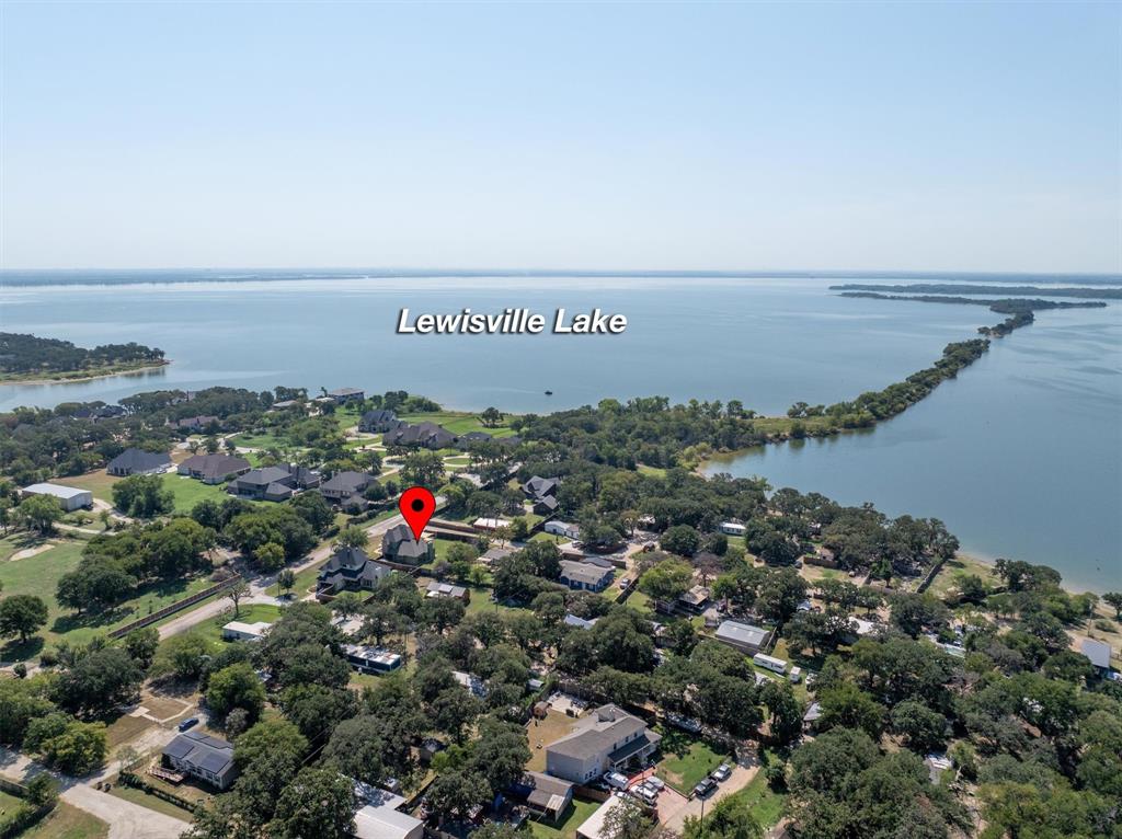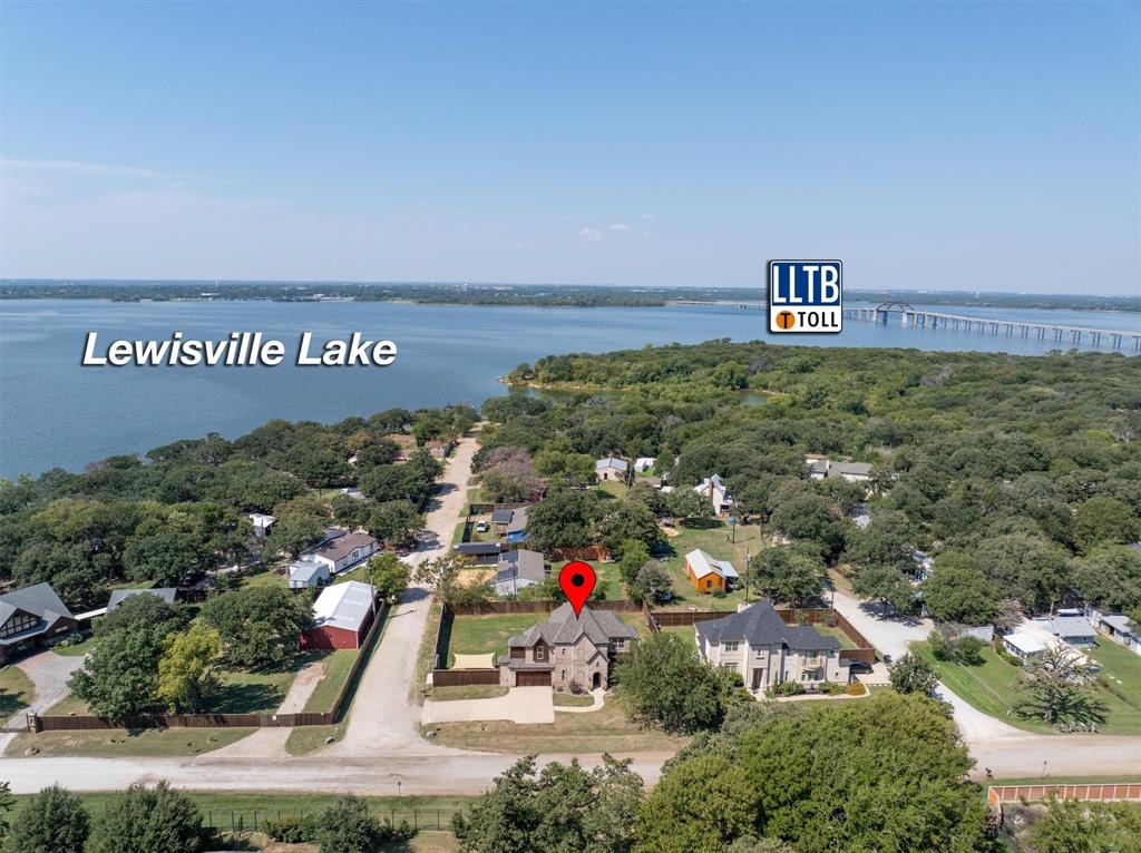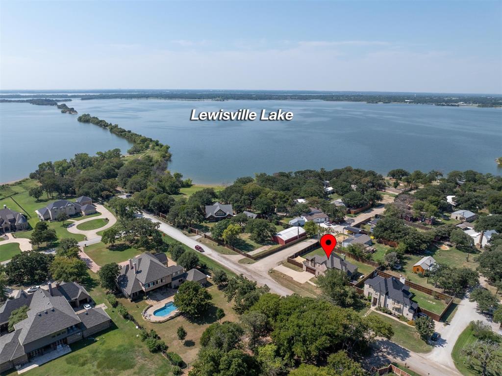 WELCOME HOME to lake life! This beautifully updated custom home sits on a third-acre corner lot with peaceful views of Lake Lewisville and quick access for fishing, hiking, or weekend adventures with pets. Step inside to grand ceilings and hand-scraped hardwood floors that flow to two inviting dining areas and a kitchen with 42 inch custom cabinetry, a granite island, and a clever storm-shelter pantry. The light-filled family room, anchored by a stone fireplace and oak mantle, is ready for cozy nights in. The primary suite, convenient half bath, and laundry are all downstairs, while upstairs you’ll find a spacious loft, two full baths, and three bedrooms—one with its own lake view. Outside, enjoy an oversized backyard with two patios, a board-on-board privacy fence, and plenty of space to play. Thoughtful upgrades like an AC- and heat-equipped garage, built-in adjustable stand-up desk, wired cameras and speakers, and stained-concrete accents add extra ease and style. Fridge, washer, and dryer stay. Roadwork and a new public area at the end of the street are nearly complete—perfect timing to settle in and start enjoying lake life!