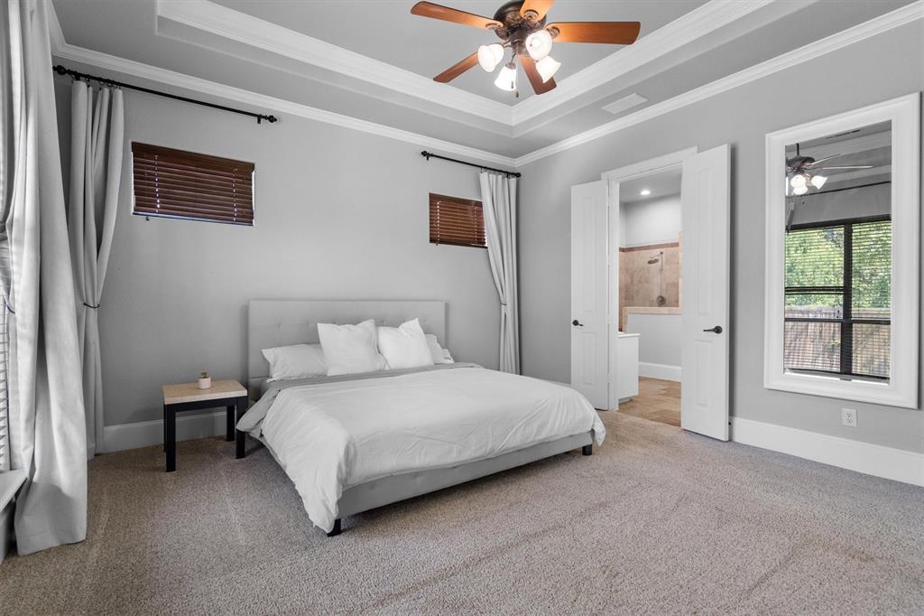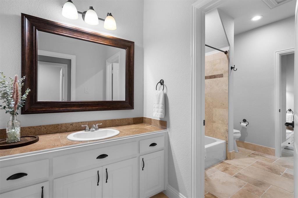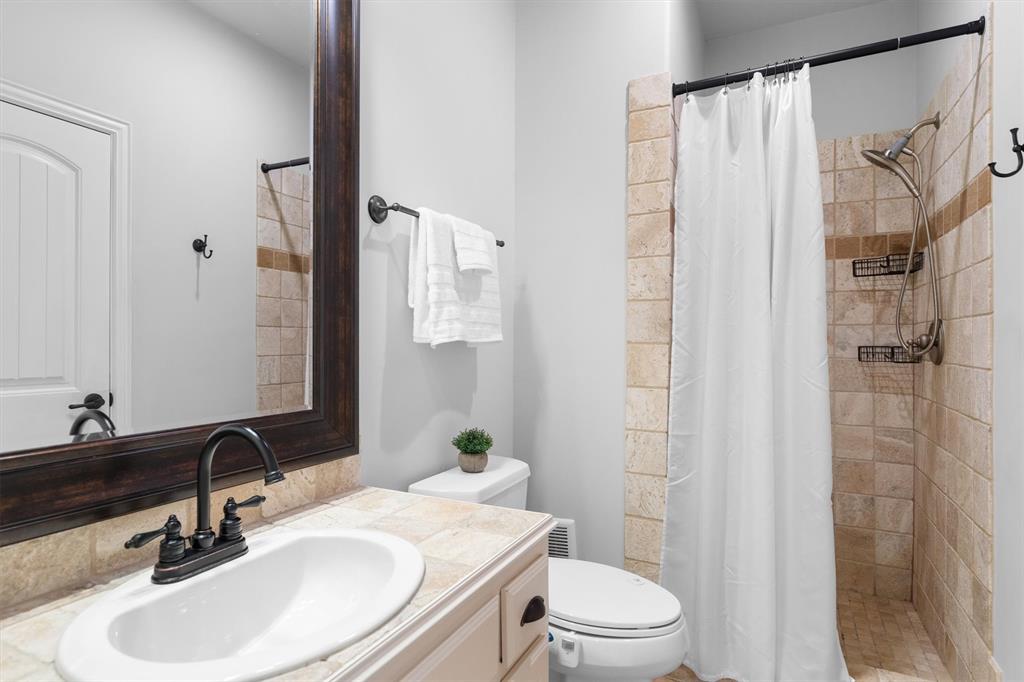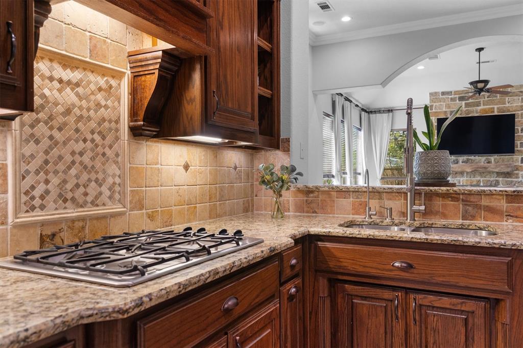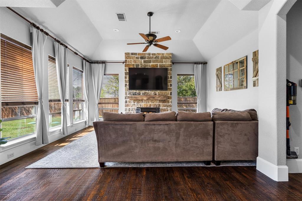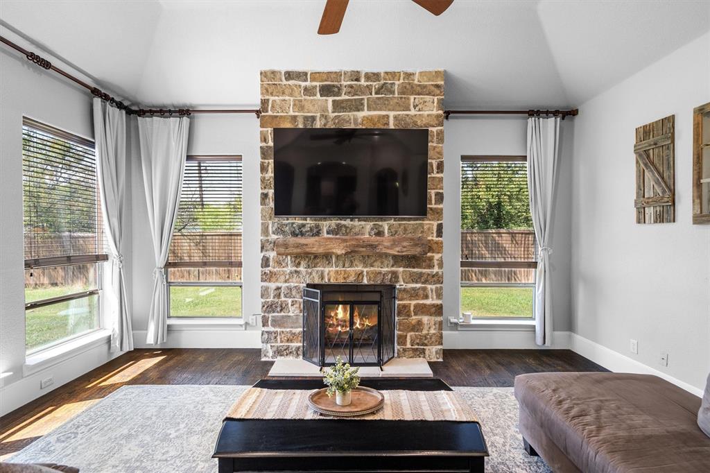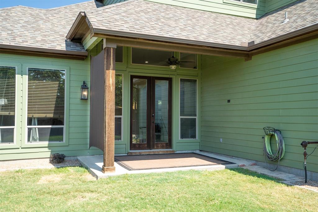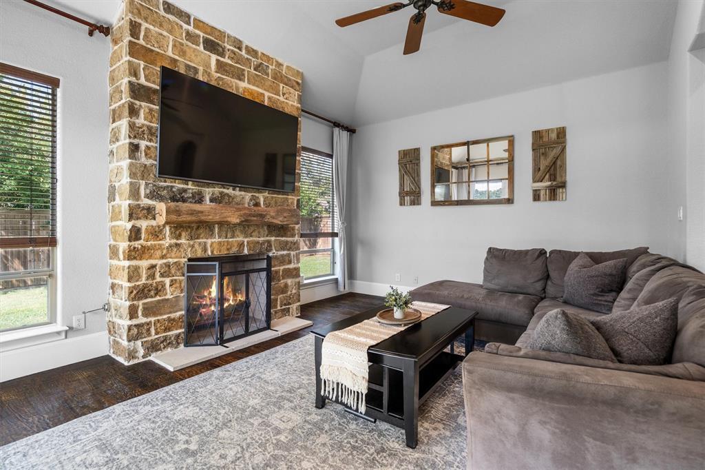 WELCOME HOME to lake life! This beautifully updated custom home sits on a third-acre corner lot with peaceful views of Lake Lewisville and quick access for fishing, hiking, or weekend adventures with pets. Step inside to grand ceilings and hand-scraped hardwood floors that flow to two inviting dining areas and a kitchen with 42 inch custom cabinetry, a granite island, and a clever storm-shelter pantry. The light-filled family room, anchored by a stone fireplace and oak mantle, is ready for cozy nights in. The primary suite, convenient half bath, and laundry are all downstairs, while upstairs you’ll find a spacious loft, two full baths, and three bedrooms—one with its own lake view. Outside, enjoy an oversized backyard with two patios, a board-on-board privacy fence, and plenty of space to play. Thoughtful upgrades like an AC- and heat-equipped garage, built-in adjustable stand-up desk, wired cameras and speakers, and stained-concrete accents add extra ease and style. Fridge, washer, and dryer stay. Roadwork and a new public area at the end of the street are nearly complete—perfect timing to settle in and start enjoying lake life!