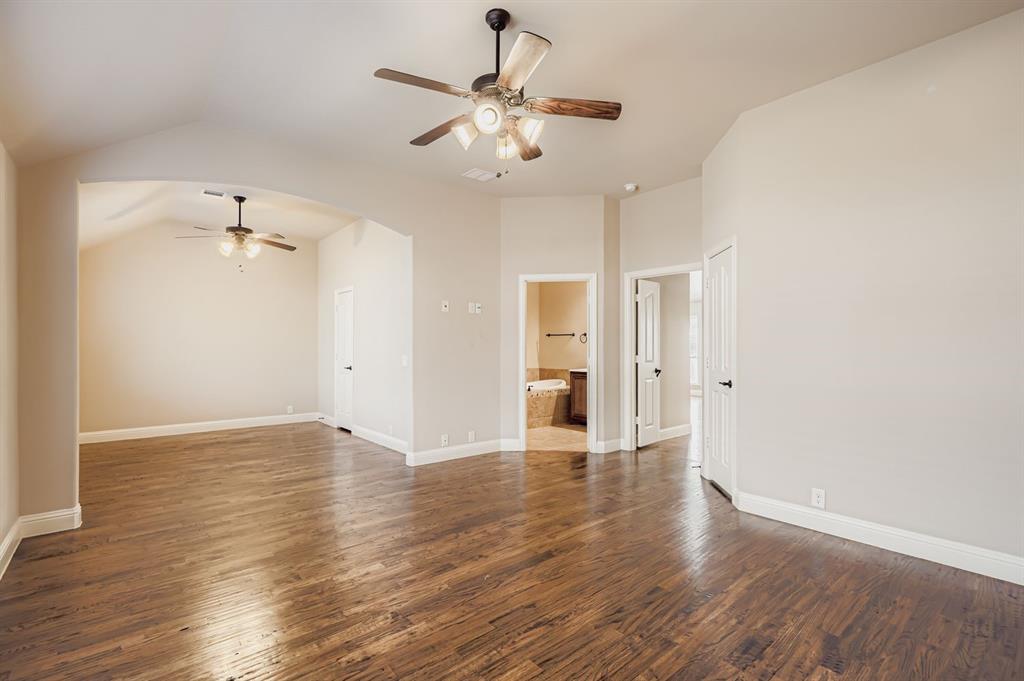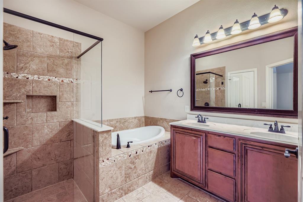 The primary suite is your own retreat with a huge sitting area that can double as an office or nursery, plus a spa-like bathroom with dual sinks, garden tub, separate shower, and walk-in closet. Secondary bedrooms are roomy and comfortable for family or guests.