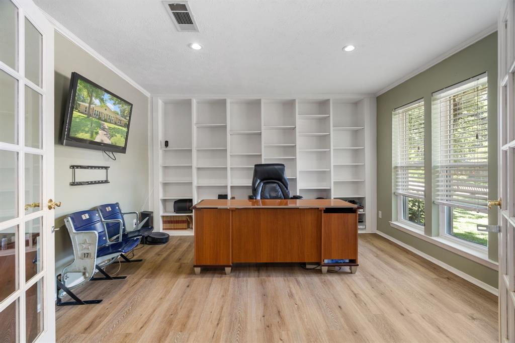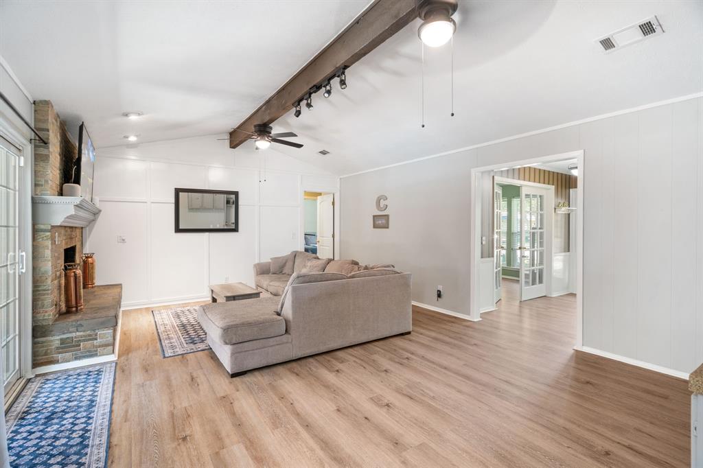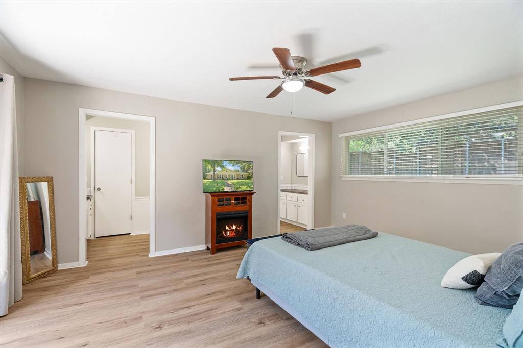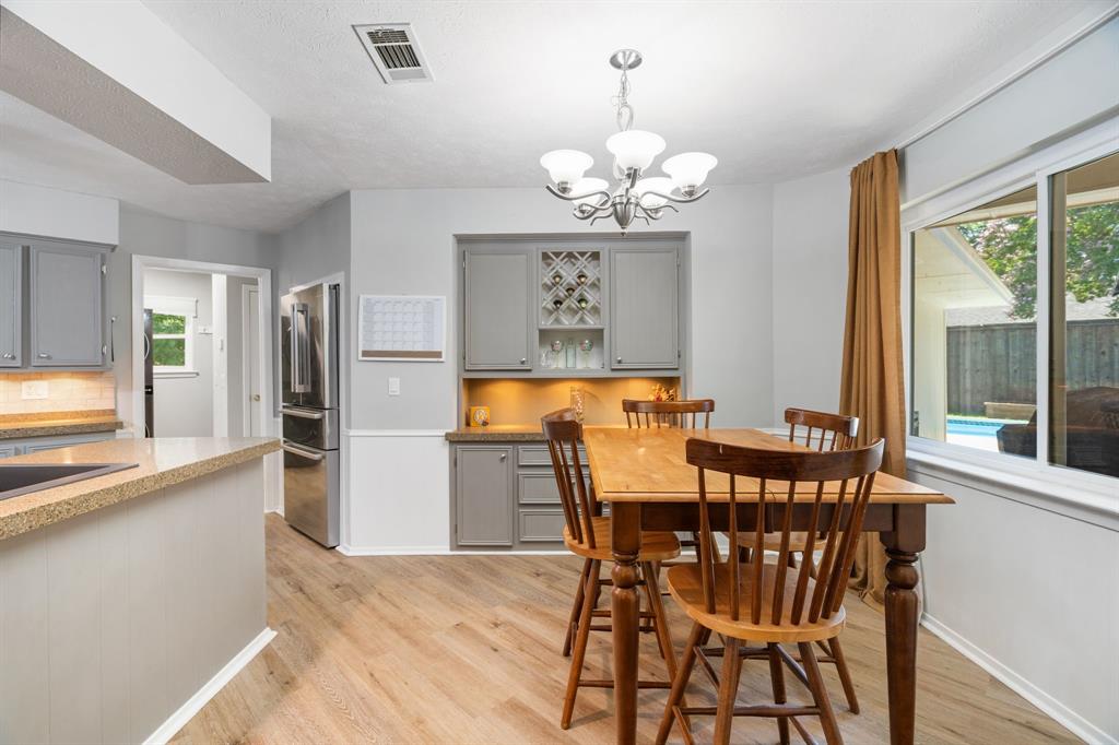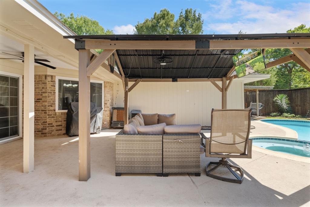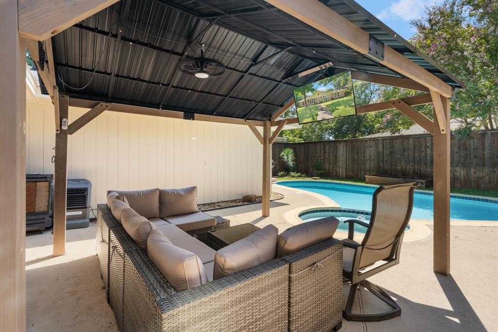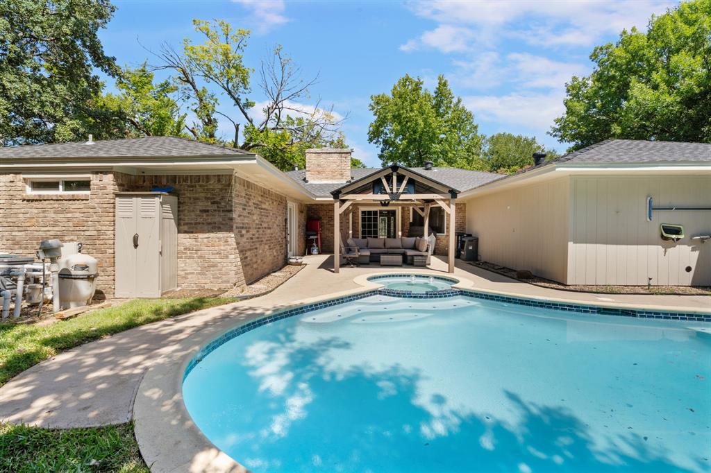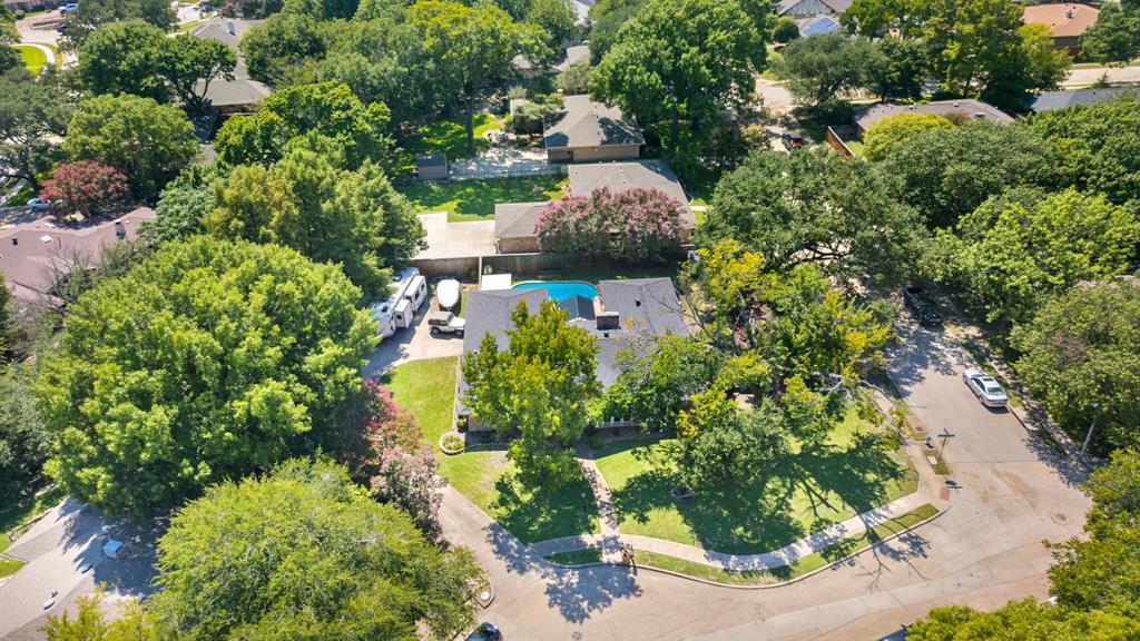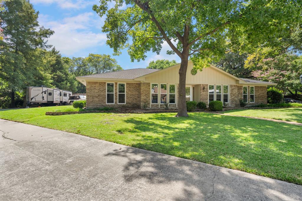 Nestled in the heart of Plano, TX, this stunning 4-bedroom, 3-bath residence offers a harmonious blend of modern elegance and comfortable living. Situated on an oversized corner, cul-de-sac lot spanning 0.39 acres, the home boasts a spectacular creek view, creating a serene oasis for you and your loved ones. As you step inside, luxury vinyl plank flooring seamlessly flows throughout the expansive layout, leading you through two spacious living areas perfect for entertaining. The home features beautifully updated windows that bring in abundant natural light, accentuating the fine finishes and modern updates. The well-appointed kitchen is a chef's dream, equipped with stainless steel appliances and anchored by a custom coffee bar in the adjacent living room, complete with a water line, ideal for morning brews. The primary suite is a private retreat, offering a spa-like bath complete with premium upgrades. An additional mother-in-law suite provides flexibility for guests or multigenerational living. The dedicated office space caters to today's work-from-home needs, ensuring productivity in a comfortable environment. Outside, the property continues to impress with an oversized 2.5 car garage, RV and boat parking, and RV-EV charging capabilities. Adventure seekers will appreciate the tornado shelter-safe room for peace of mind. Relaxation awaits with a re-plastered and re-tiled in-ground gunite pool and spa, complemented by updated pool equipment. Enjoy outdoor gatherings under the charming pergola and gazebo, or simply unwind amidst the refreshed landscaping and freshly painted exterior trim and siding. Major updates include replumbed water lines with a manifold system and more. Discover a home that meets every need while providing a tranquil escape from the hustle and bustle, perfectly embodying the best of Plano living.