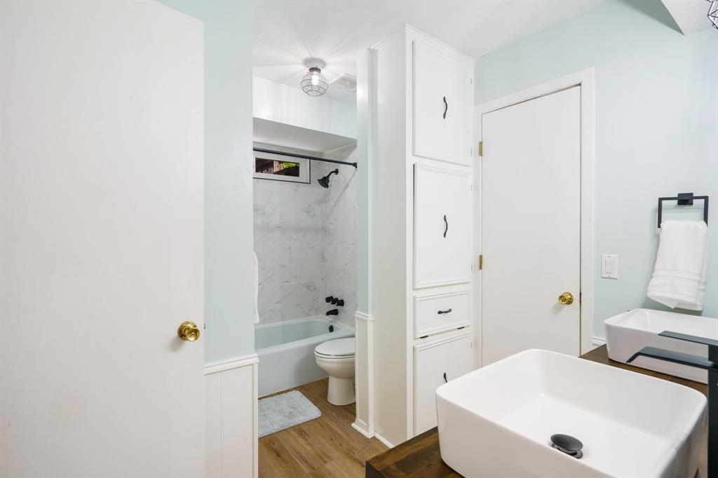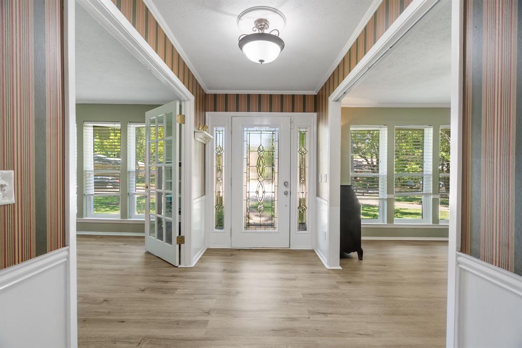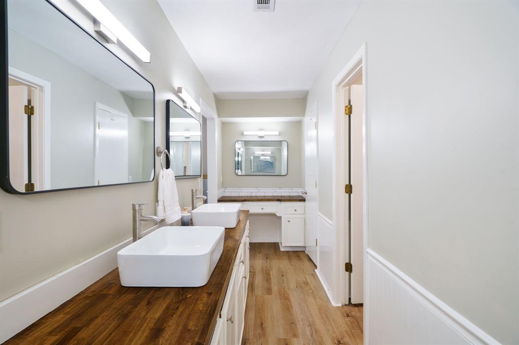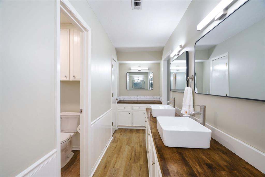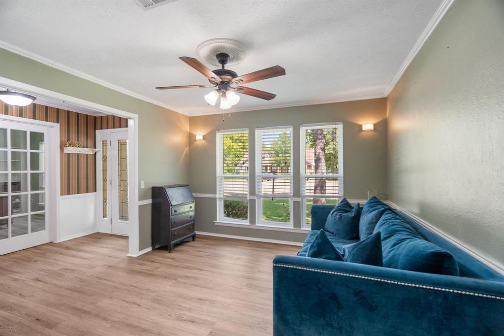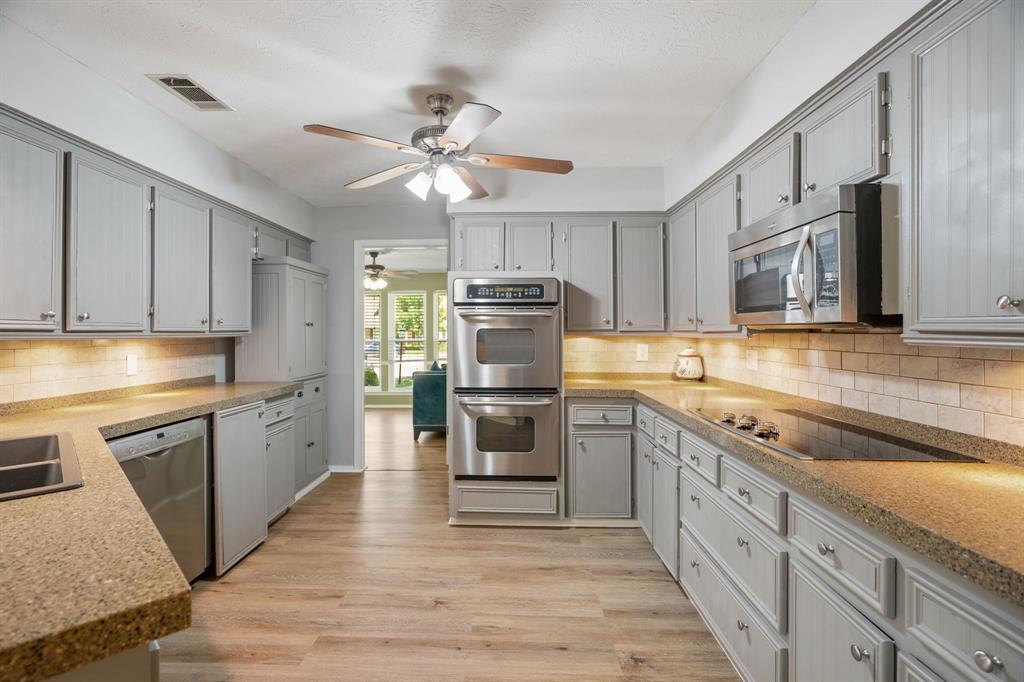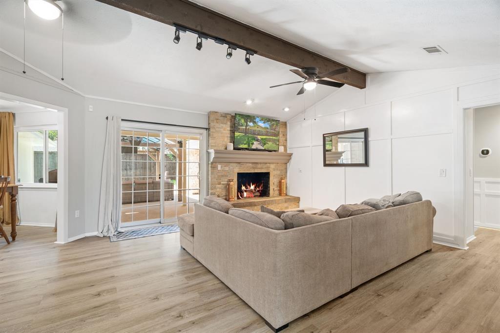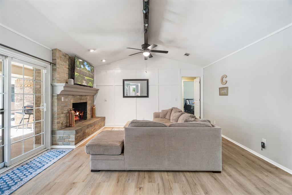Nestled in the heart of Plano, TX, this stunning 4-bedroom, 3-bath residence offers a harmonious blend of modern elegance and comfortable living. Situated on an oversized corner, cul-de-sac lot spanning 0.39 acres, the home boasts a spectacular creek view, creating a serene oasis for you and your loved ones. As you step inside, luxury vinyl plank flooring seamlessly flows throughout the expansive layout, leading you through two spacious living areas perfect for entertaining. The home features beautifully updated windows that bring in abundant natural light, accentuating the fine finishes and modern updates. The well-appointed kitchen is a chef's dream, equipped with stainless steel appliances and anchored by a custom coffee bar in the adjacent living room, complete with a water line, ideal for morning brews. The primary suite is a private retreat, offering a spa-like bath complete with premium upgrades. An additional mother-in-law suite provides flexibility for guests or multigenerational living. The dedicated office space caters to today's work-from-home needs, ensuring productivity in a comfortable environment. Outside, the property continues to impress with an oversized 2.5 car garage, RV and boat parking, and RV-EV charging capabilities. Adventure seekers will appreciate the tornado shelter-safe room for peace of mind. Relaxation awaits with a re-plastered and re-tiled in-ground gunite pool and spa, complemented by updated pool equipment. Enjoy outdoor gatherings under the charming pergola and gazebo, or simply unwind amidst the refreshed landscaping and freshly painted exterior trim and siding. Major updates include replumbed water lines with a manifold system and more. Discover a home that meets every need while providing a tranquil escape from the hustle and bustle, perfectly embodying the best of Plano living.