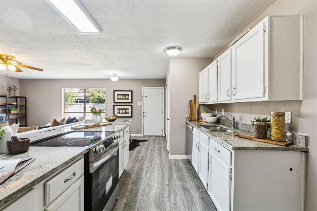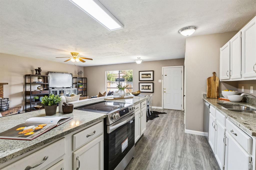 Step inside this beautifully updated 3 bedroom, 2 bath home in Allen! The open layout features LVP flooring throughout and a spacious living area with a cozy wood-burning fireplace—perfect for relaxing evenings at home. The kitchen has been refreshed with granite countertops, stainless steel appliances, and crisp white cabinetry, creating a bright and functional space. Both bathrooms have been thoughtfully updated with stylish finishes, including subway tile in showers and modern vanities. Outside, you’ll find a large backyard with plenty of room for entertaining, gardening, or play. Conveniently located with quick access to major roads, schools, and shopping—this home is move-in ready and waiting for you!