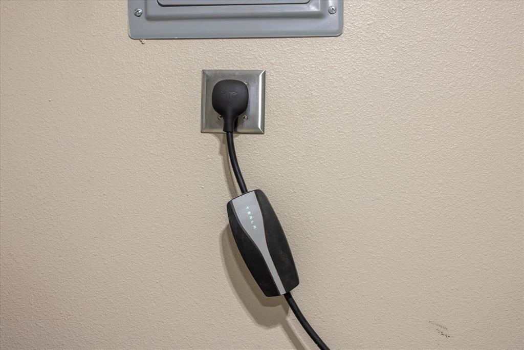 Welcome to this 2023 semi custom built home in the beautiful eclectic community of Canyon Creek with boat launch access. This is a touch of modern meets country in this spacious immaculate home. As you enter the front door you are greeted with the open floor plan and beautiful easy maintenance wood look tile floors. The kitchen is a chef's dream with ample granite countertops and large island for family gatherings, walk in pantry and lots of cabinet storage space. The living room has a stunning stone fireplace that will warm you on the cool fall and winter evenings. There are beautiful custom plantation shutters throughout the home! The oversized back patio is fully screened to protect from the elements and looks out over your oversized fully fenced backyard. The garage has a fully installed Tesla EV charger.