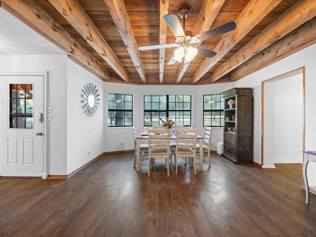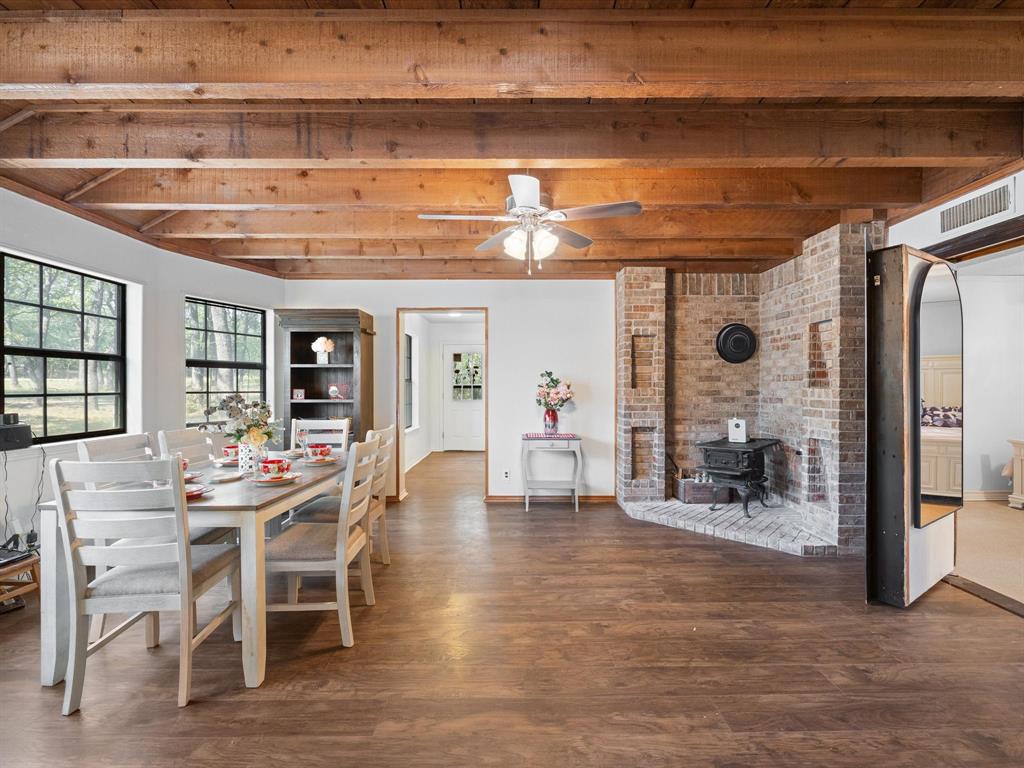 Tucked away at the end of a quiet road, this charming home offers privacy, peaceful surroundings, and plenty of room to make it your own. NEW 5-ton HVAC unit in 2024 & the metal roof is 4 years old! With three bedrooms and two and a half bathrooms, there's plenty of space to spread out, get cozy, and make lasting memories. Step inside and you’re greeted by an open and roomy layout that’s built for entertaining. The living room is welcoming and relaxed—a perfect spot to catch up with friends or enjoy a quiet evening. The eat-in kitchen is just the place for casual mornings, while the oversized dining room is ready for family dinners, holidays, and everything in between. Now here’s the fun part—the primary bedroom is downstairs and is accessed by a secret door. Yes, really. You get comfort, space, and your own private ensuite bathroom—all hidden behind a secret entry. Upstairs, one of the bedrooms is ideal for creating a private retreat. Whether it’s for guests, teens, or a home office, it’s got great potential. Outside, you're surrounded by trees and a natural peaceful setting. The backyard offers all the privacy you’ve been longing for, with plenty of shade to relax under. There’s also a small metal workshop with electricity—handy for hobbies, DIY projects, or just extra storage. Located in a well-regarded school district, Paradise ISD! Only a 45-minute drive to DFW! It’s got great bones, so bring your style and ideas, and turn it into the place you’ve always dreamed of.