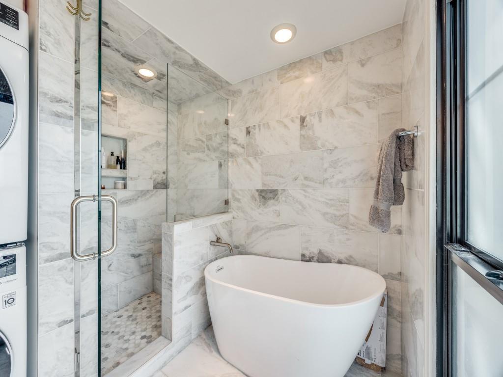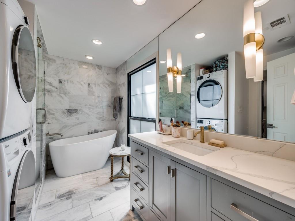 second bathroom is softly designed with modern fixtures and classic touches. Enjoy the