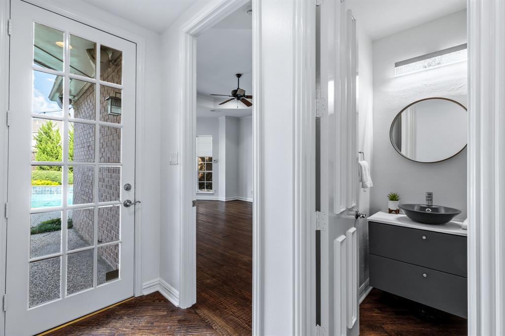 Timeless Home on Quiet Cul-de-Sac with Pool & Spa! Freshly painted and move-in ready, this beautifully updated residence sits on an oversized lot in one of Plano’s most sought-after neighborhoods. A dramatic sweeping staircase and soaring ceilings create a grand first impression, while the formal living room and private primary suite both overlook the sparkling pool, relaxing spa, and spacious play yard. The refreshed kitchen features granite countertops, stainless-steel appliances, and abundant cabinetry, opening to a large family room with fireplace, built-ins, wet bar, and pool views. Dual front and rear staircases offer easy access to the upstairs bedrooms and versatile living spaces. Abundant natural light, tasteful updates, and timeless design make this home a perfect blend of classic elegance and modern comfort. Prime Location: Short walk to the neighborhood basketball court and playground, and just minutes from The Shops at Legacy, Legacy West, Windhaven Park, Arbor Hills Nature Preserve, and Stonebriar Centre. Close to DNT & PGBT-190.