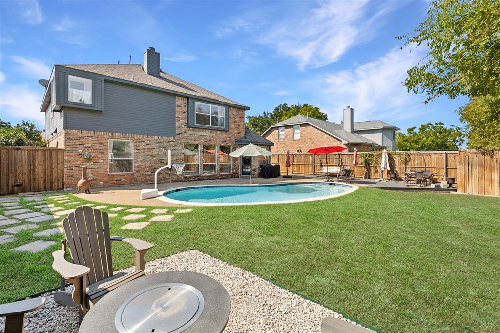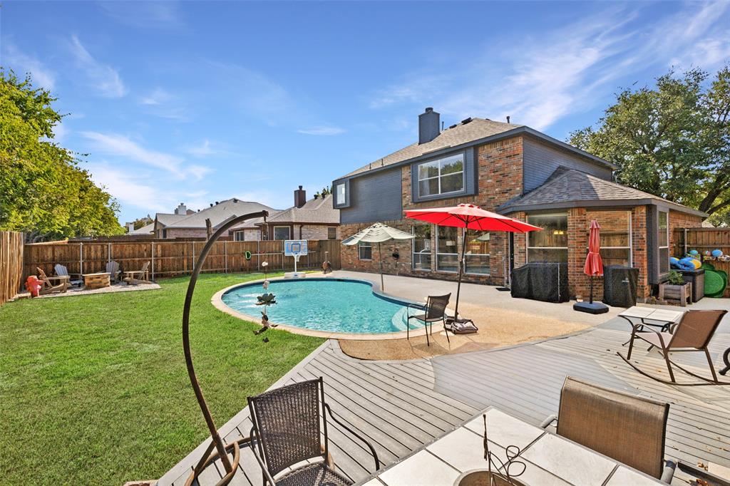 Prime Frisco Location – Exceptional Value with a POOL! Discover the perfect blend of location, comfort, and style in this beautiful brick home situated in the heart of Frisco and zoned to the highly acclaimed Frisco ISD. Enjoy unbeatable access to the Dallas North Tollway, The Star, Legacy West, and all the premier shopping, dining, and entertainment Frisco has to offer. Step inside to an incredible view of the back yard pool, while walking the open main floor, that includes an office, formal dining, large living room with updated fireplace, and spacious kitchen that includes granite countertops, lots of storage, gas range, and space to eat in! Full Bath and bedroom on main floor, plus laundry room and plenty of closet space! LARGE bedrooms upstairs, with a spacious second living area. Primary bath has been remodeled, hot water heater was new in 2025, One HVAC unit was new in 2025. Backyard deck has been re-done, and the oversized yard is perfect for you to make your own! Sparkling blue pool is ready for you to jump right in!! This home is a true gem in a highly sought-after area. Don’t miss your chance to own a piece of Frisco at an incredible price!