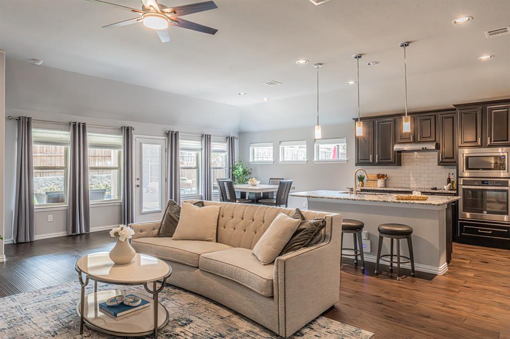 Best of both worlds—quiet neighborhood living with quick, direct access to Fort Worth. Situated near the Burleson-Fort Worth line with fast I-35 connections to Downtown, the Medical & Cultural Districts, and major employers—all within the highly rated Burleson ISD. This PRISTINE showstopper delivers upgraded stone-and-brick curb appeal, and the ultra-private backyard provides a peaceful, at-home retreat. Inside, the popular open-concept plan lives large with high ceilings and abundant natural light. The oversized primary suite offers excellent closet space; secondary bedrooms are generously sized. A versatile flex room adapts to your needs—home office, media-TV space, workout zone, or playroom. Premium finishes include wood and tile flooring, granite countertops, and tiled showers—this home shows like a model. Outdoors, enjoy a cozy covered patio plus extended decking for dining and entertaining. Minutes to restaurants, shopping, entertainment, and the amazing H-E-B grocery store—everything you need, right where you want it.