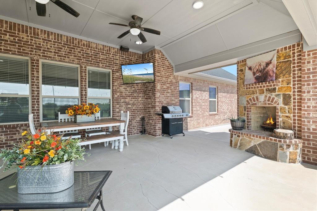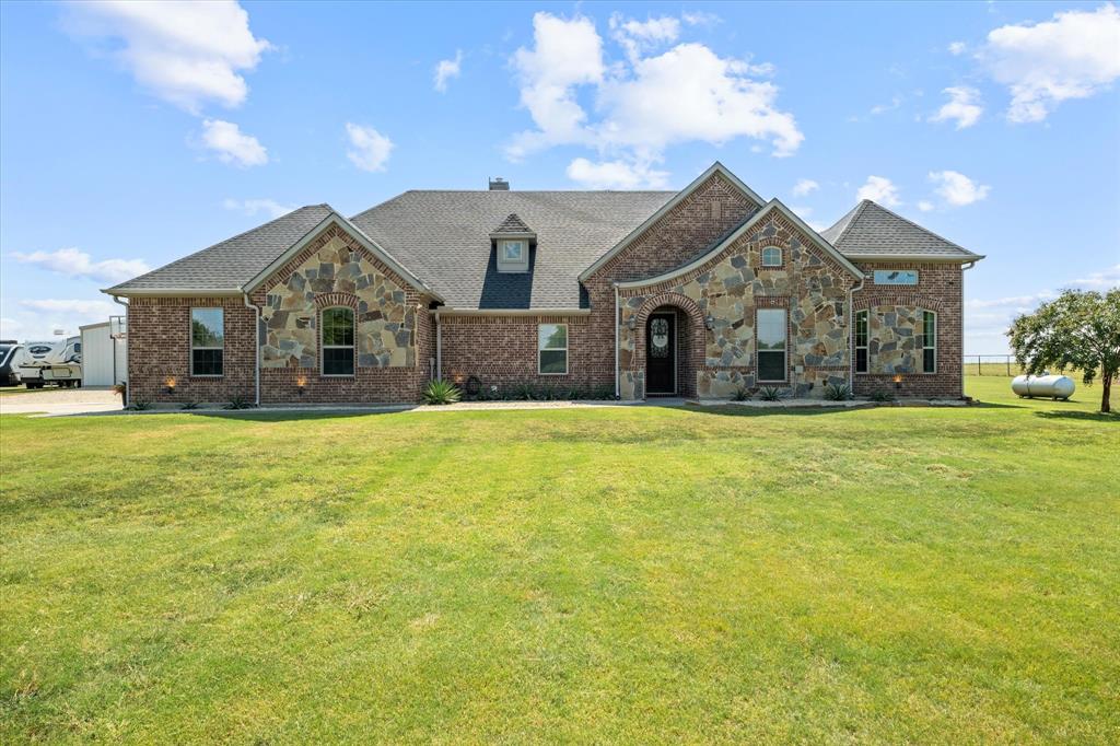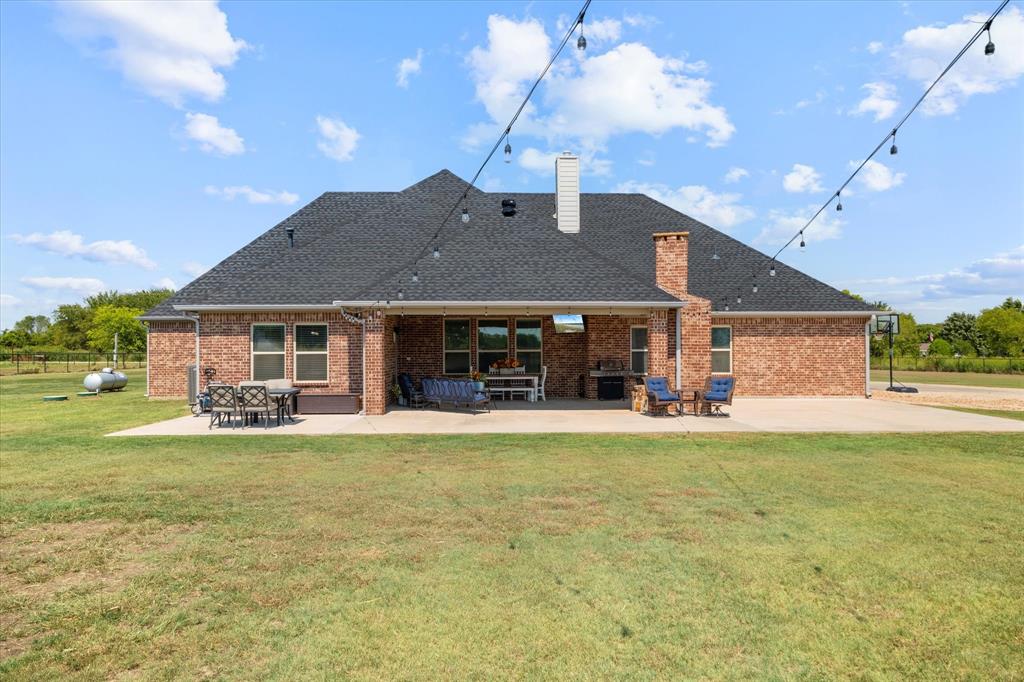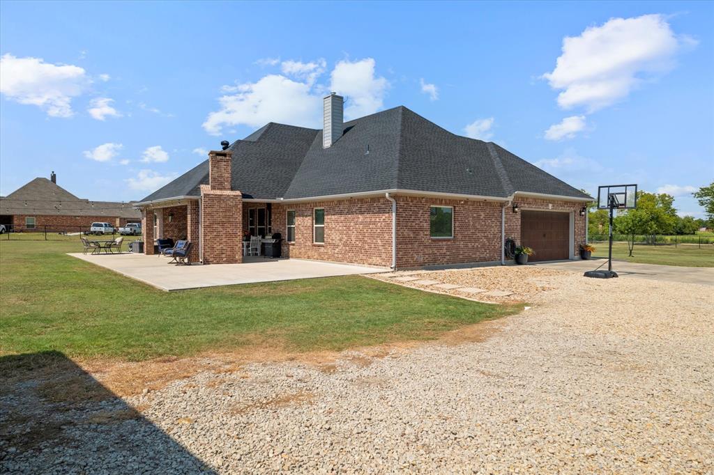 The primary suite offers a true retreat, complete with a spa-like en-suite bath and generous closet space. Three additional bedrooms provide comfort for family or guests, while the private office creates the perfect space for working from home. Step outside to enjoy the peaceful country setting, complete with room for animals, outdoor gatherings, and future expansion. Enjoy the outdoors with another fireplace, oversized exterior patio, custom garden beds, and string lights with a playground ready for kids to enjoy! Property is entirely fenced and cross fenced with an automatic gate entrance. 30x40 spray foam insulated shop for even more space to make your own. Recent upgrades throughout ensure this home is truly move-in ready. If you’ve been searching for the perfect blend of luxury, function, and country charm, this home delivers it all. Attic has full spray foam insulation lending for excellent temperatures in even the hottest days and energy savings. To top it all off, this home features a BRAND NEW 2025 installed GAF Class 3 impact resistant roof!! Makes for an amazing savings on home insurance and home protection in our North Texas weather! Less than 2 miles from I35 for quick access to Denton, Gainesville, and DFW!!