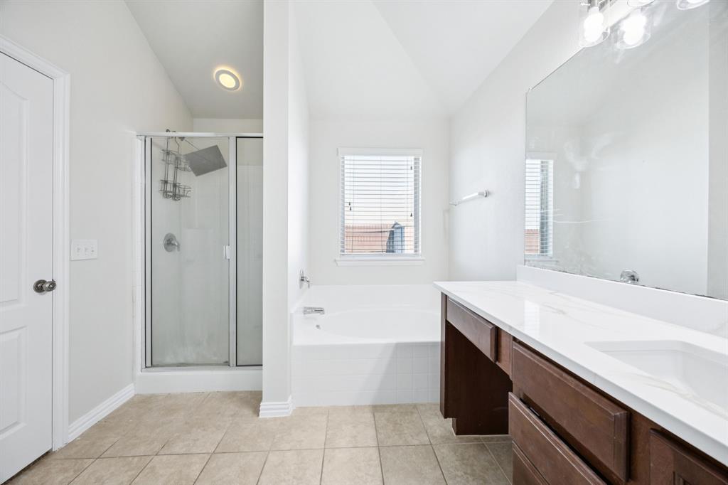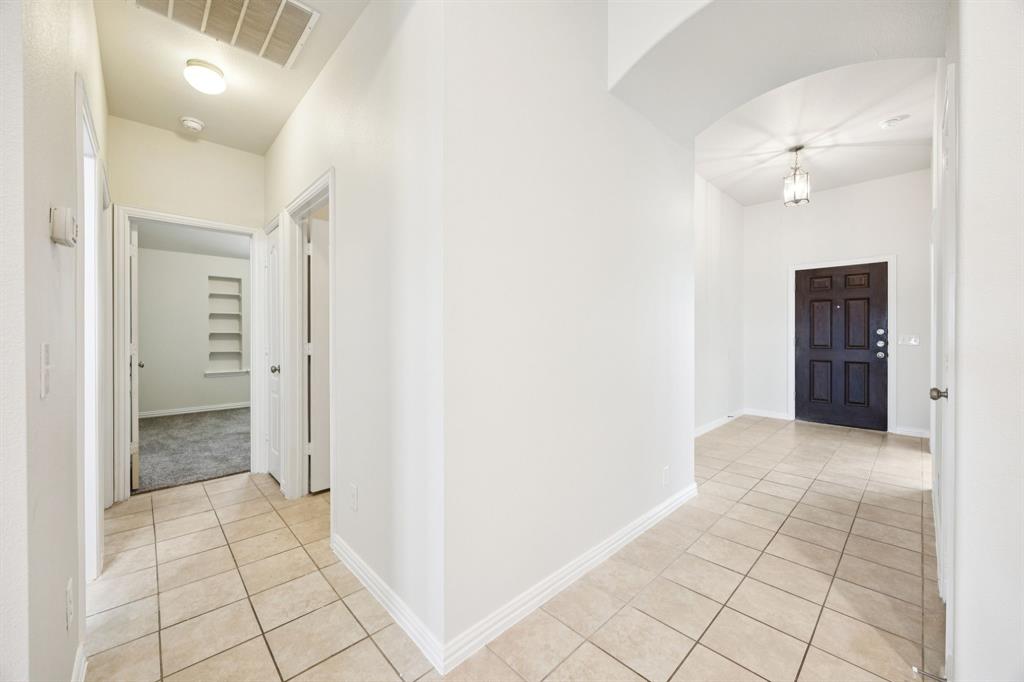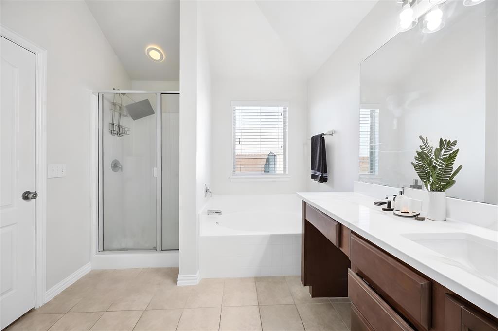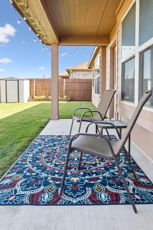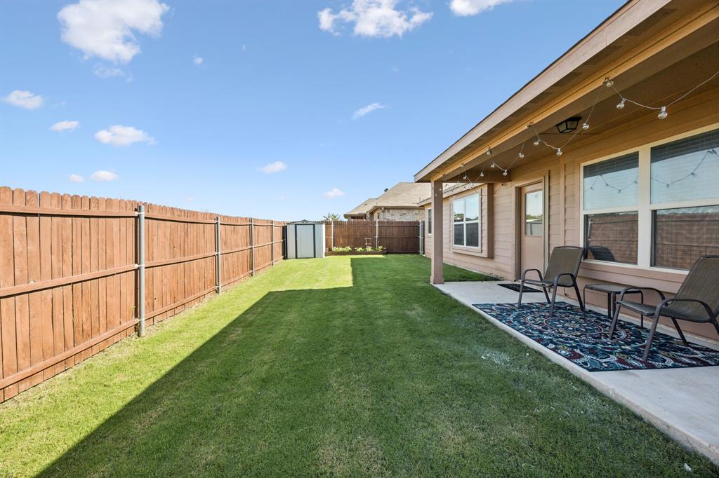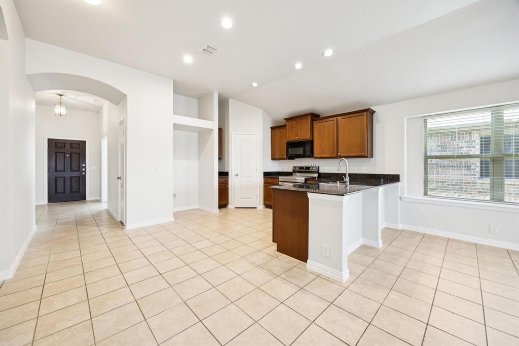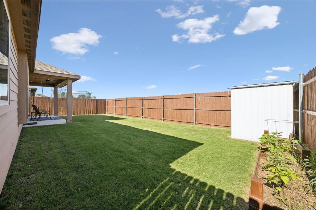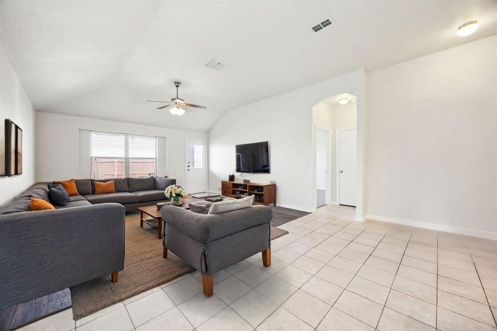 This home shines with curb appeal thanks to its manicured landscaping and welcoming front elevation. Step inside to find vaulted ceilings, arched doorways, and an open-concept layout enhanced by fresh paint and updated vinyl flooring. The kitchen offers abundant counter space, a breakfast bar, and direct connection to the oversized living room—perfect for gatherings. The private owner’s suite features a dual-sink quartz vanity, soaking tub, rainfall shower, and a generous walk-in closet. Guest bedrooms are tucked away, including one with built-ins, while the versatile 4th bedroom—with two closets—can double as a home office or flex space. Outdoors, enjoy a covered patio overlooking the lush yard and raised garden beds. Major updates include a recently installed lifetime architectural shingle roof with synthetic felt and impact resistance. Conveniently located near shopping, dining, Lake Worth, and in Eagle Mountain-Saginaw ISD—with no HOA!