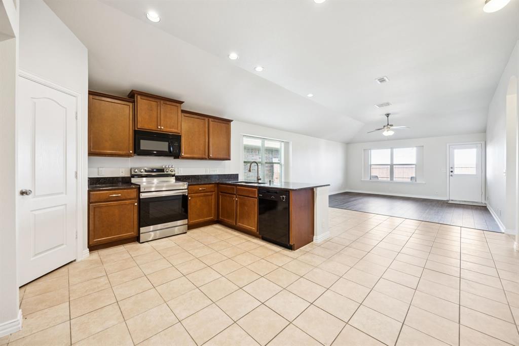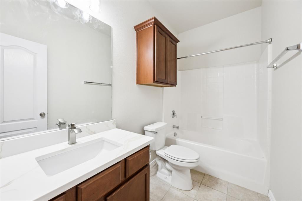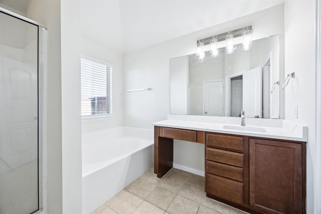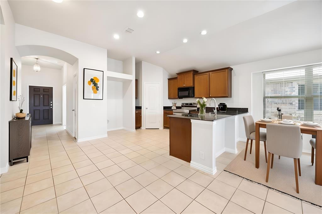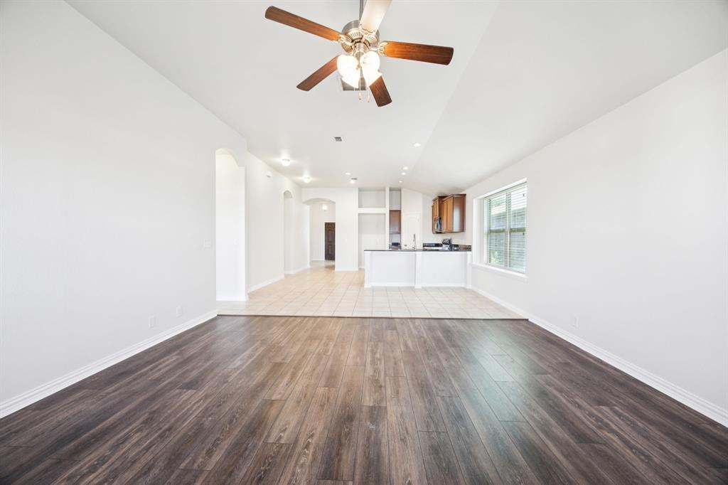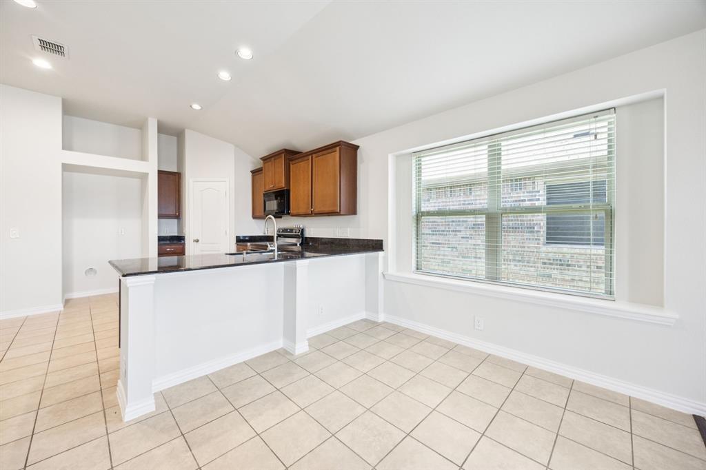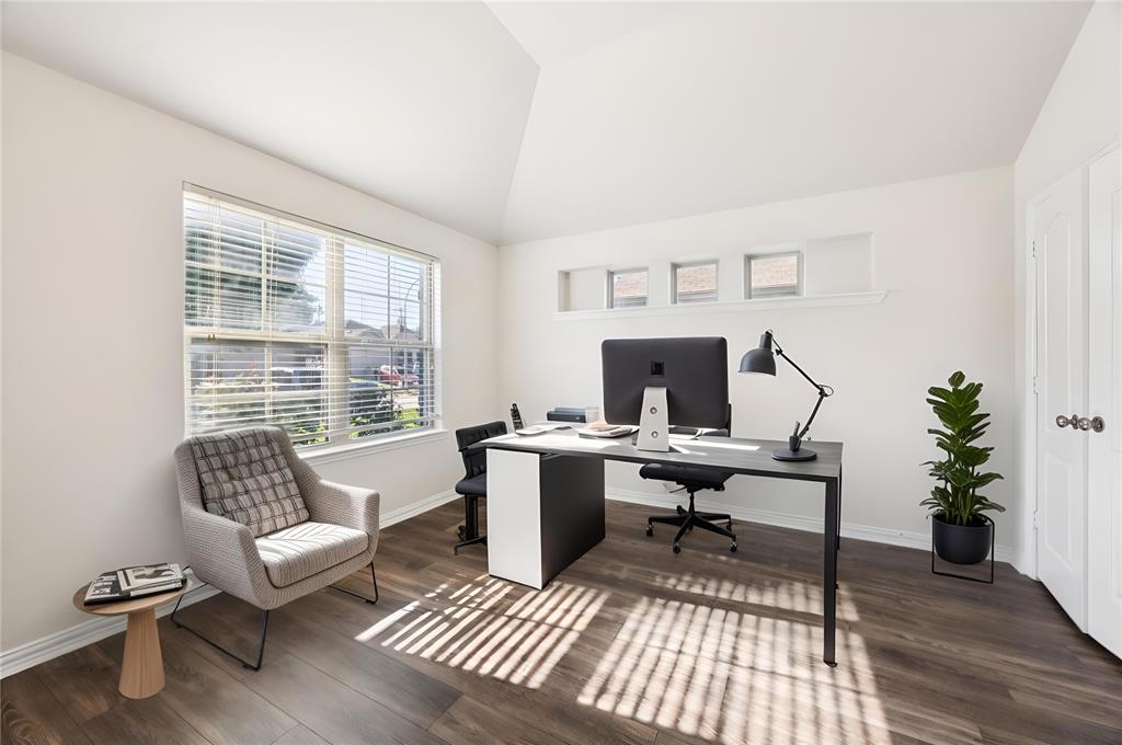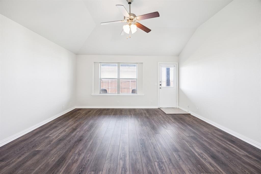 This home shines with curb appeal thanks to its manicured landscaping and welcoming front elevation. Step inside to find vaulted ceilings, arched doorways, and an open-concept layout enhanced by fresh paint and updated vinyl flooring. The kitchen offers abundant counter space, a breakfast bar, and direct connection to the oversized living room—perfect for gatherings. The private owner’s suite features a dual-sink quartz vanity, soaking tub, rainfall shower, and a generous walk-in closet. Guest bedrooms are tucked away, including one with built-ins, while the versatile 4th bedroom—with two closets—can double as a home office or flex space. Outdoors, enjoy a covered patio overlooking the lush yard and raised garden beds. Major updates include a recently installed lifetime architectural shingle roof with synthetic felt and impact resistance. Conveniently located near shopping, dining, Lake Worth, and in Eagle Mountain-Saginaw ISD—with no HOA!