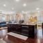 The open-concept chef’s kitchen flows seamlessly into the dining area and expansive living room, anchored by two fireplaces that add warmth and character. Thoughtful touches throughout—curved wall corners, graceful archways, and designer fixtures—create a refined yet inviting atmosphere.
