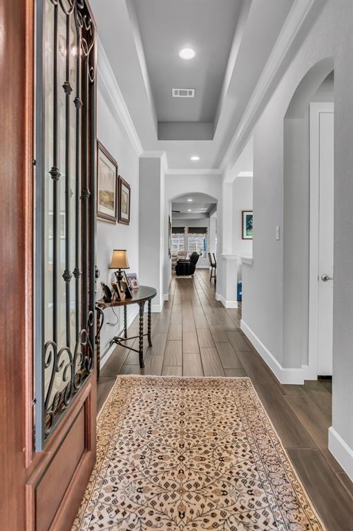 Welcome to this stunning single-story home located on a desirable corner lot in the award-winning Harvest community of Argyle, TX. This thoughtfully designed 3-bedroom, 3-bathroom residence also includes a versatile space that can serve as a private home office or a formal dining room.