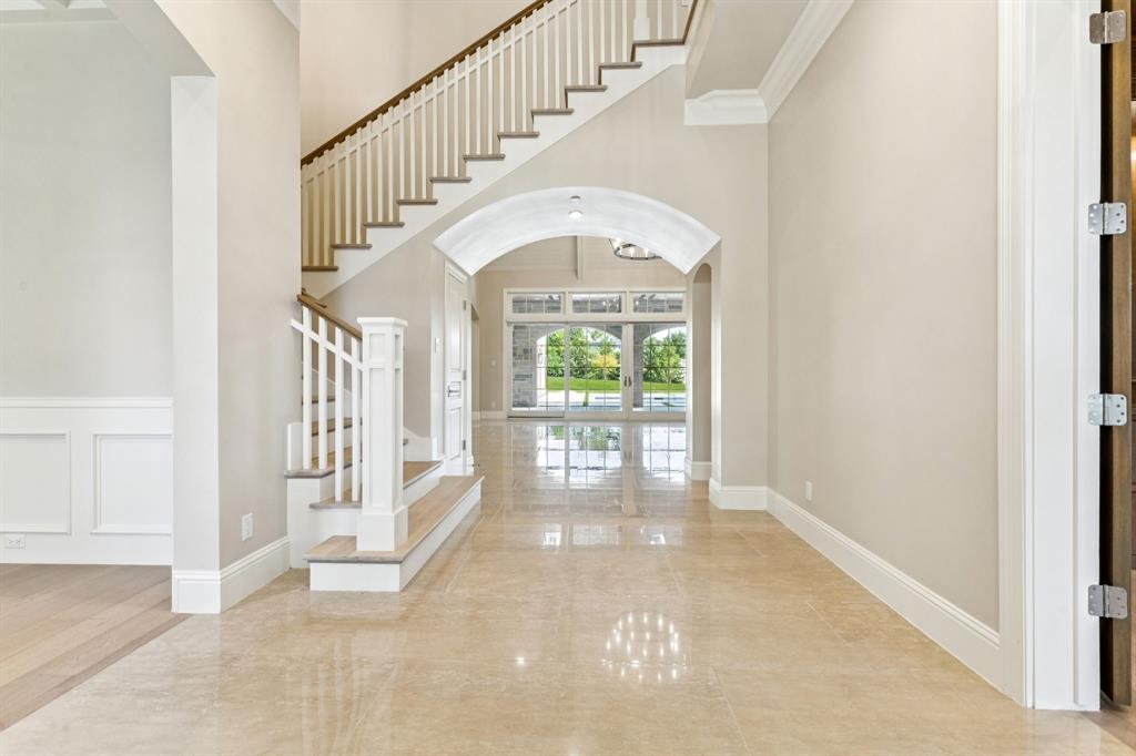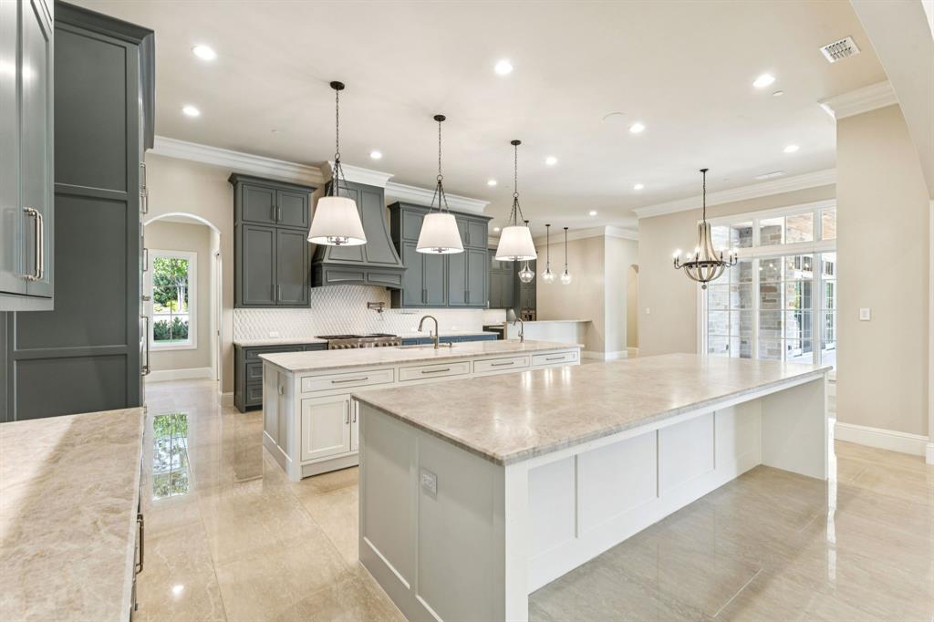 Majestic French Country Estate Home located in the ESTATES OF QUAIL HOLLOW! This meticulously designed 7,320 sq ft, 4-bedroom, 4.5-bathroom home is nestled on a private 1.5+ acre cul-de-sac homesite. This estate showcases serene pond views from your front door and a park-like setting in your backyard! Grande French doors invite you into an impressive foyer with gleaming floors, custom millwork, and a custom hand-forged iron chandelier. The gourmet kitchen showcases Taj Mahal honed quartzite double islands, Wolf 6-burner range with griddle and double ovens, SubZero refrigerator, Cove dishwasher, and adjacent bar with wine refrigerator and Scotsman ice maker. The great room features a dramatic floor to ceiling paneled wall with a 10-ft cast stone fireplace and chevron inlay, vaulted wood ceiling, and an abundant wall of glass windows and French sliding doors which offer spectacular views of this magnificent property. Retreat to the luxurious primary suite with diamond cut marble floors, Hollywood soaking tub, walk-in marble shower, two vanities, makeup bar, and two custom walk-in closets. Additional highlights include multiple game rooms with wood beam ceilings, premiere study with coffered ceiling and wood panel walls, home gym, extended covered patio with outdoor kitchen and gas grill, custom stone fireplace, sparkling pool and spa, sauna and more! Every exquisite detail reflects exceptional craftsmanship and designer finishes in this highly coveted 24-hour guard gated community!