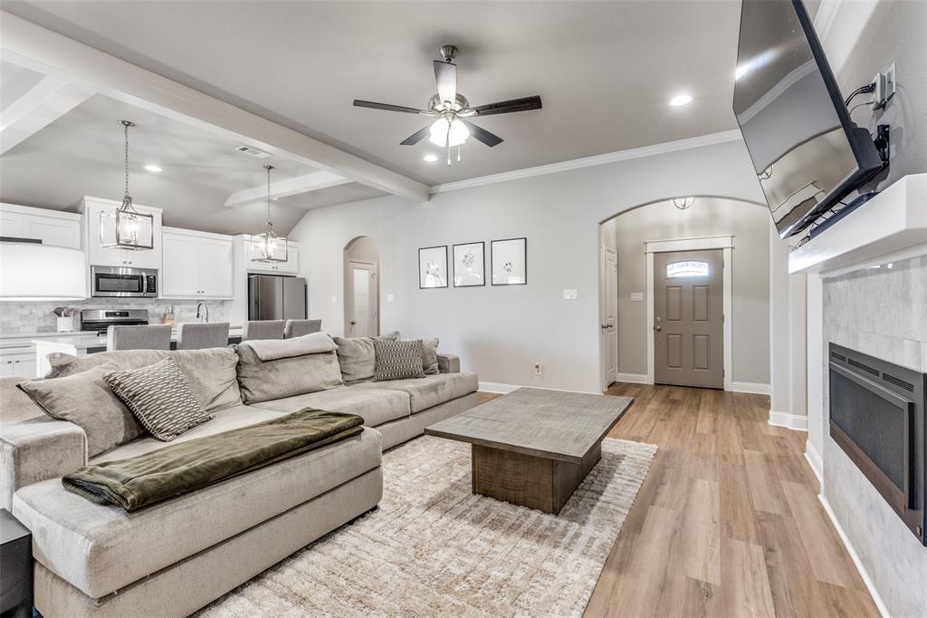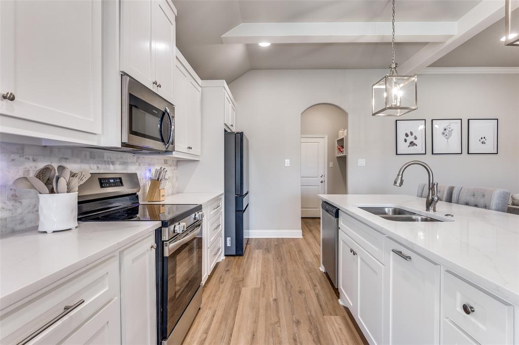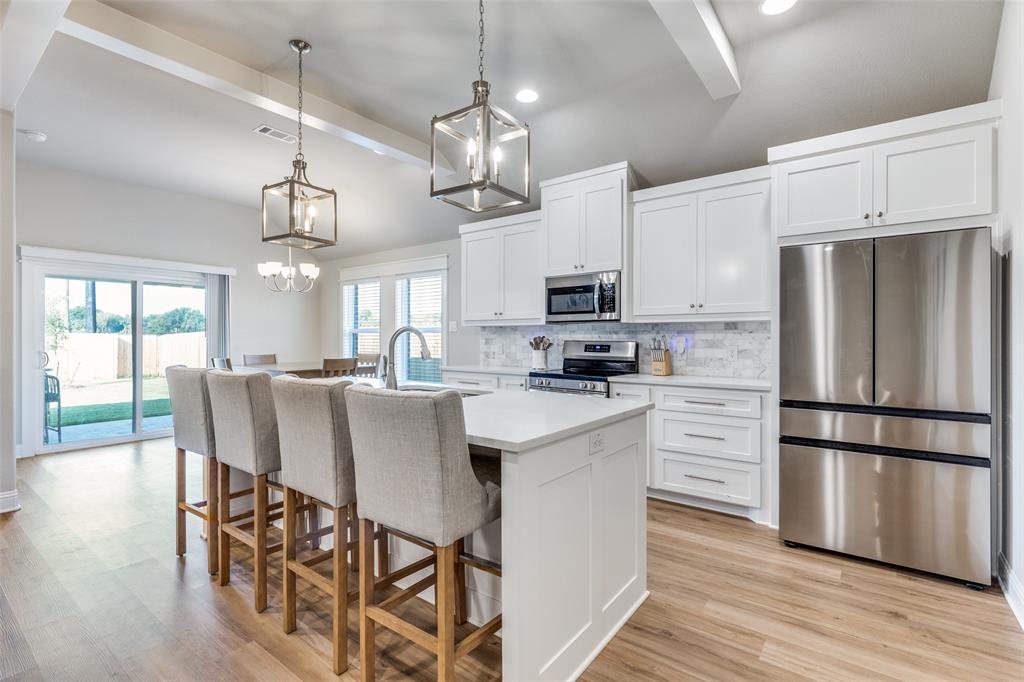 Modern Comfort & Efficiency at 721 Raylan Street. Discover exceptional design and thoughtful details in this like-new 4-bedroom, 2-bathroom home located in a quiet Springtown neighborhood—Step inside to a vaulted entry leading into the living room, flooded with natural light. The open-concept kitchen features luxury flooring, quartz countertops, a walk-in pantry, and a mudroom connected to a utility room. This super energy-efficient home features a split bedroom layout, offering a private retreat in the spacious primary suite. Enjoy a spa-like bathroom with a relaxing soaking tub, walk-in shower, dual sinks with towering cabinetry, walk in closet, and a separate water closet. Outdoors, unwind or entertain on the extra-large covered patio.