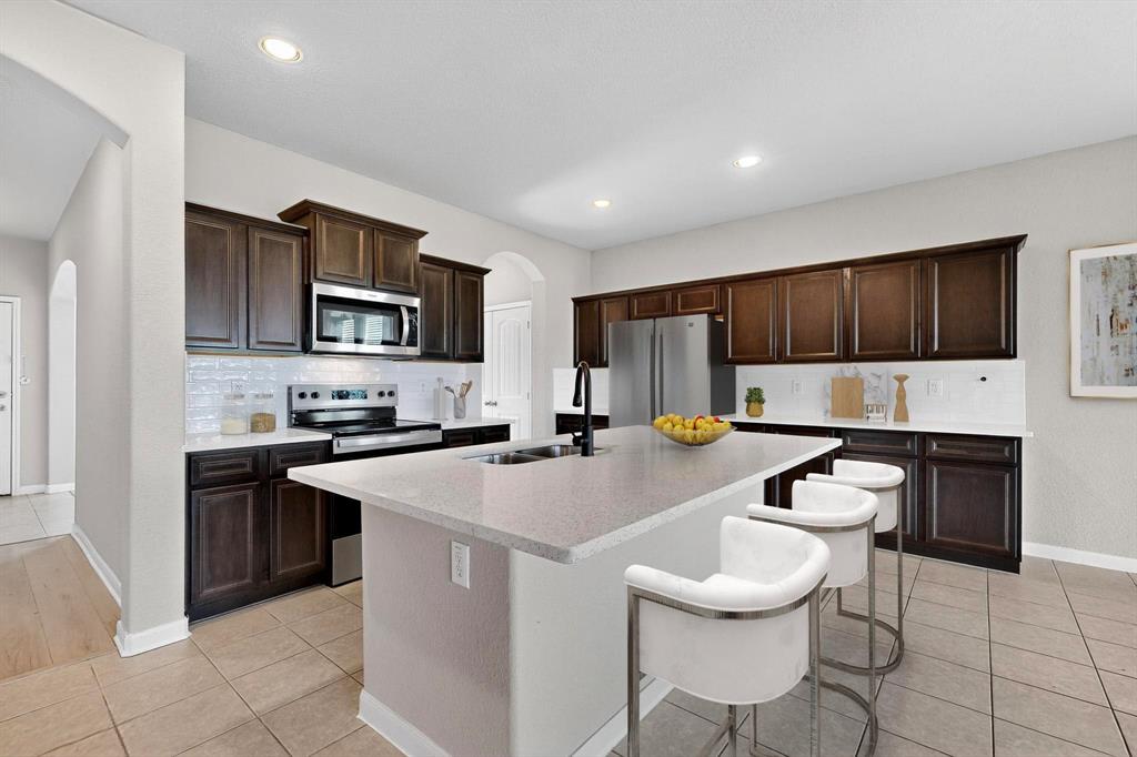 Beautifully updated 2-story home in the sought-after Windmill Farms community of Forney. This home features new flooring throughout with no carpet except on the stairs, new quartz countertops, new appliances, fresh updates, and a bright, open floor plan filled with natural light. The spacious kitchen offers an extended island, ample cabinetry, and recessed lighting, perfect for both everyday living and entertaining. The primary suite is conveniently located downstairs, while secondary bedrooms and upstairs bonus area provide generous space for family or guests. Enjoy serene water views from multiple rooms and a backyard retreat that truly stands out.