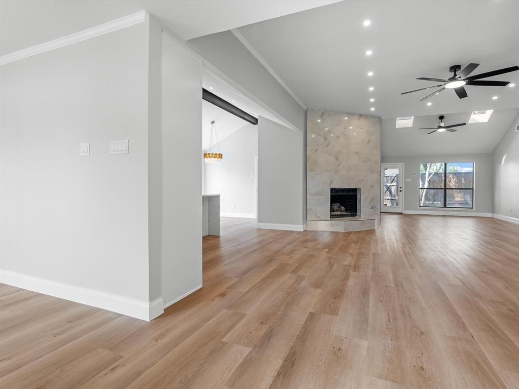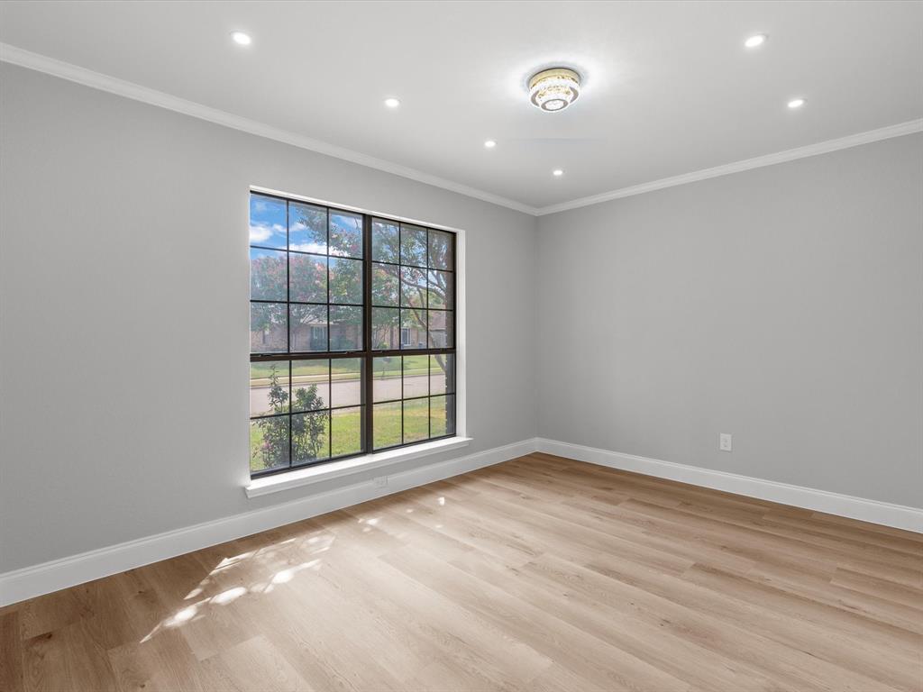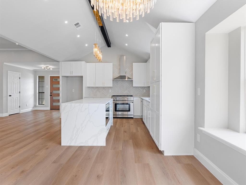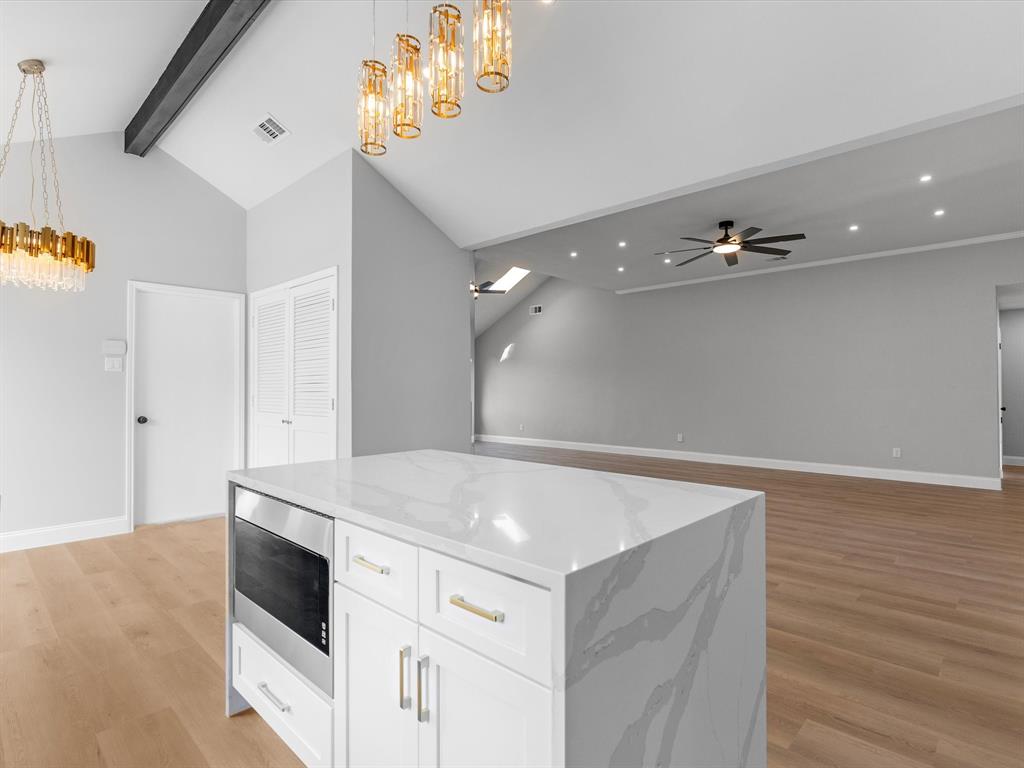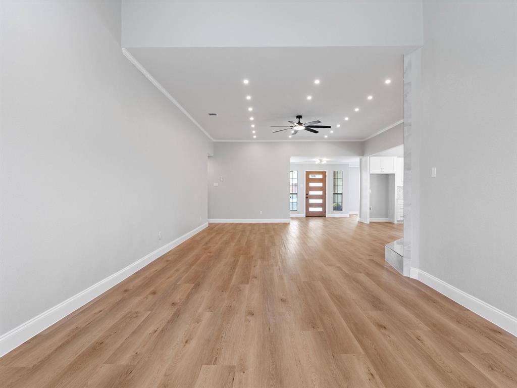 This fully renovated gem in the heart of Plano combines timeless craftsmanship with modern design. In 2025 the foundation was professionally adjusted and is backed by an engineer’s report and a lifetime transferable warranty, while an additional structural upgrade carries a 12-year transferable warranty protected by a million-dollar policy. A brand-new roof (2025) and all-new Schedule-40 PVC plumbing beneath the entire house—valued at $30,000 and inspected and approved by the City of Plano—provide complete peace of mind. The living area has been reimagined with soaring ceilings and an open layout that delivers a fresh, new-construction feel. At the center, the chef’s kitchen showcases a 36-inch five-burner gas cooktop with oven, 36-inch commercial-grade vent hood, quartz waterfall countertops, a touchless faucet, and soft-close drawers for ample storage. Ideally located within walking distance of Carpenter Park Recreation Center and the scenic Bluebonnet Trail, this home offers elegant style, lasting quality, and everyday convenience.