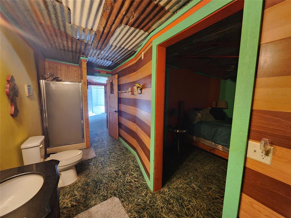 Lake Tawakoni cabin on large corner lot in a lake front subdivision. Cabin has 1 bedroom, 1 bathroom with full size washer and dryer connections. Kitchen dining and living combo. Large back porch with access from bedroom or yard. Seller states the septic tank will need new pump motor. All information in approx, buyer and buyers agent to very information.