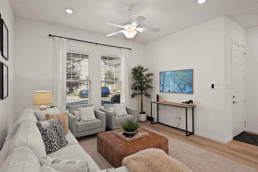 Welcome to this charming two-story townhouse located in The Station in Sachse, located just minutes from Firewheel Mall and Heritage Park! Offering modern style and a convenient lifestyle, this home is full of thoughtful details and inviting spaces. A cute front porch sets the tone before stepping inside to an open floorplan designed for today’s living. The kitchen is a chef’s delight with a gas cooktop, stainless steel appliances, and a spacious island with sink and seating—perfect for both meal prep and casual dining. The kitchen flows seamlessly into the dining and living areas, creating the ideal space for entertaining. A mudroom area adds convenience and extra functionality. Upstairs, you’ll find a versatile second living area, along with a spacious primary suite filled with natural light and room for a sitting area. The primary bath offers dual sinks and a walk-in shower with a built-in bench for comfort. Secondary bedrooms are nicely sized, and the secondary bath includes a tub~shower combination. With its prime location in a vibrant community and close proximity to shopping, dining, and entertainment, this adorable townhouse offers both comfort and convenience. Don’t miss the opportunity to make it yours!