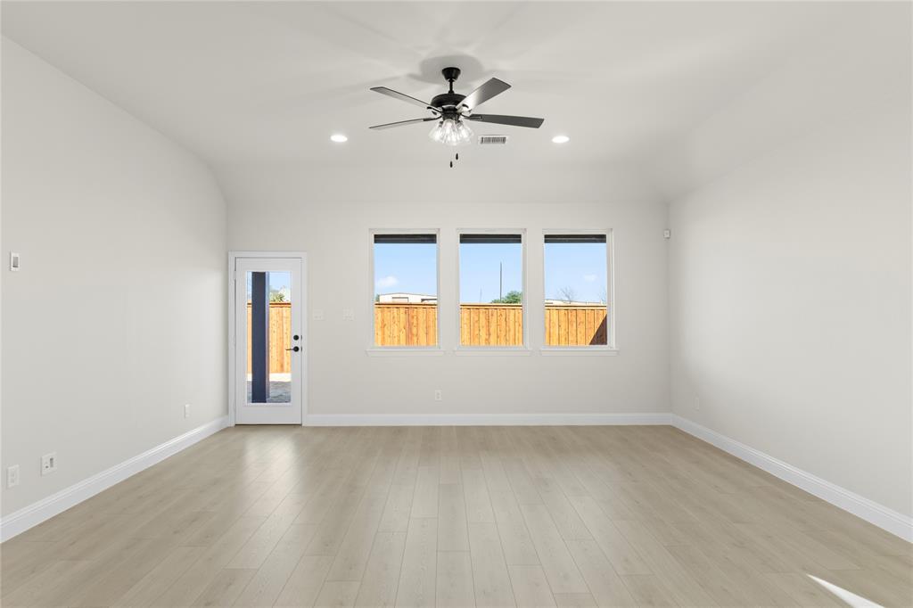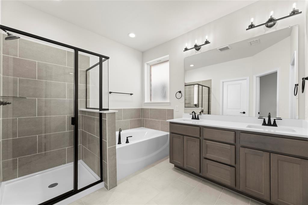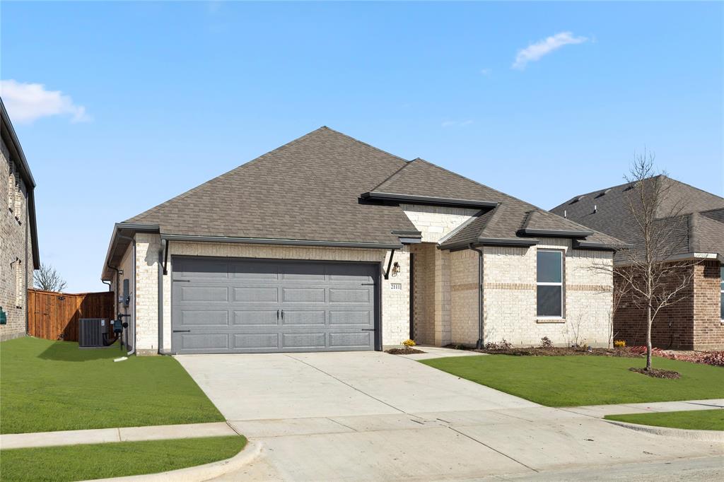 MLS# 21065959 - Built by RockWell Homes - Nov 2025 completion! ~ 1-story Patriot plan, new home design w. 4 bedrooms, 2.5 bathrooms, home office and a 2-car garage. Exterior with full brick, covered porch, oversized glass front door, home office with double door, and energy-efficient dual-pane windows. Smart home wiring and video doorbell. Open-concept kitchen, living, and dining area. Kitchen includes an island with bar-top seating, abundant solid surface countertops, an undermount sink, stainless steel appliances, dishwasher, microwave, range oven, 42-inch upgraded cabinets and a walk-in pantry. Additional kitchen amenities include Delta faucets, a ceramic tile backsplash, upgraded flooring, and recessed can lighting. The primary bedroom suite features dual sink vanities, ceramic tile flooring, a garden tub, vaulted ceilings, walk in closet and a ceramic tile shower with a glass enclosure. This suite also includes Delta faucets, a lighting package, and a hardware package. Secondary bathrooms w. ceramic tile flooring and tubs-shower enclosures, upgraded cabinets, solid surface countertops, delta faucets. In addition, this new home features fully fenced in private back yard with gate, full gutters, full sprinkler system, full landscaping package with trees, smart home, dual pane energy efficient windows, upgraded flooring and full gutters. Community features pool, walking trails, green spaces, quick access to I-30, I-80 and downtown Dallas..