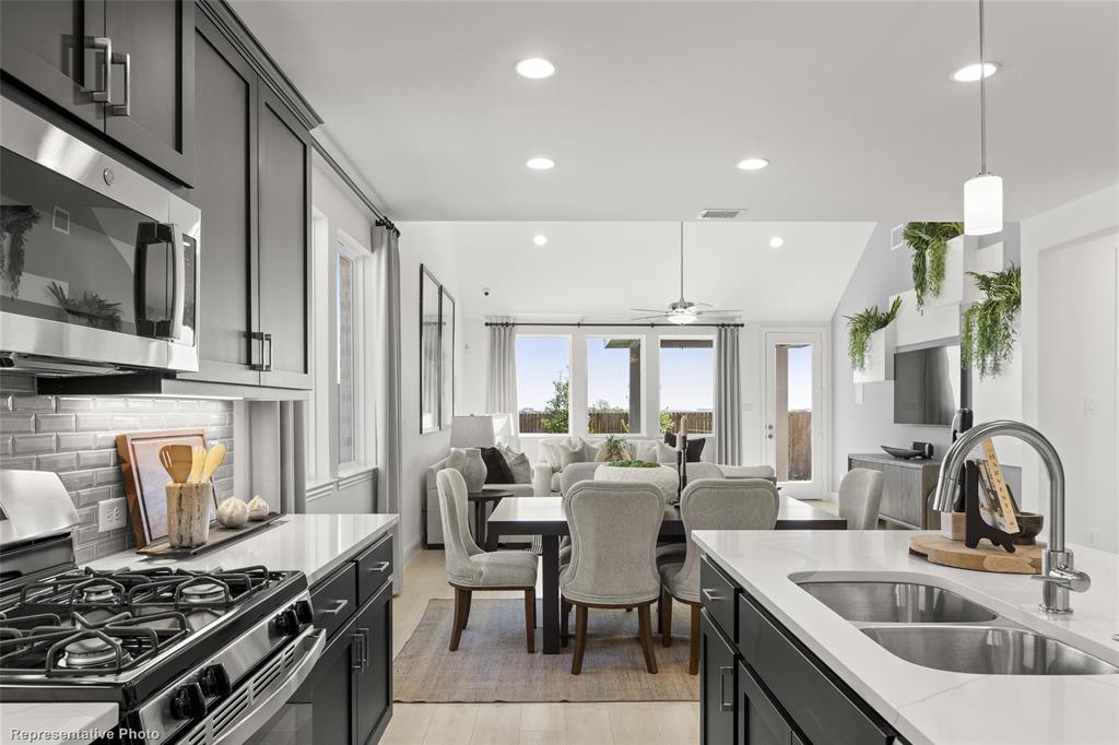 MLS# 21065967 - Built by RockWell Homes - Nov 2025 completion! ~ Reduced fixed rate. New Freedom home design w. 5 bedrooms, 3.5 bathrooms, home office, game room & 2-car garage. Exterior with full 4 side brick, 8-ft upgraded front door & covered patio. Kitchen with large center island, abundant solid surface countertop space, GE stainless steel appliances, gas range, microwave, dishwasher, 42-inch upgraded cabinets, upgraded flooring, under cabinet lights, undermount sink, large walk-in pantry, Delta faucet, ceramic tile backsplash, recessed can lighting and upgraded flooring. Living area vaulted ceilings and multiple dual pane energy efficient windows allowing natural light to enter the living area. Primary suite dual sinks, solid surface countertops, ceramic tile flooring, ceramic tile shower with glass enclosure, garden soaker tub, Delta faucets, hardware package, upgraded cabinets and lighting. Gameroom with 3 bedrooms and 2baths upstairs. Included: full sprinkler system, full landscaping package with trees, fully fenced in private back yard, smart home, new home warranty, upgraded flooring, dual pane energy efficient windows, energy star home, recessed can lighting, ceiling fans and more. Community features pool, walking trails, walking distance to highly acclaimed schools, green spaces and quick access to I-30, I635, I80, I20, PGBT161 and downtown Dallas as well as North Dallas, shopping, dining, recreational activities and more.