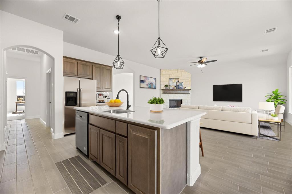 Beautiful 3 bedroom 2.5 Bathroom with a study that has a closet space to turn into a fourth bedroom and Covered Patio. This home has it ALL. Stone to Ceiling, Wood Burning Fireplace, Wood Look Tile Flooring, The kitchen features stainless steel appliances, quartz counter tops, a spacious kitchen island, and a huge nearby pantry. The master suite has everything that a long day will put you at ease, as it features dual sink vanity, a spacious garden tub, a shower with its plush seat, and a huge walk-in closet.The double garage is a bonus, with plenty of room for cars and tools to ensure everything finds its perfect place. With these amenities, comfort is guaranteed in every corner of the house! Enjoy a covered patio with a backyard big enough to add a playground or small pool for the whole family to enjoy. The peace and tranquility of this house is what you looking for and you will not be disappointed.